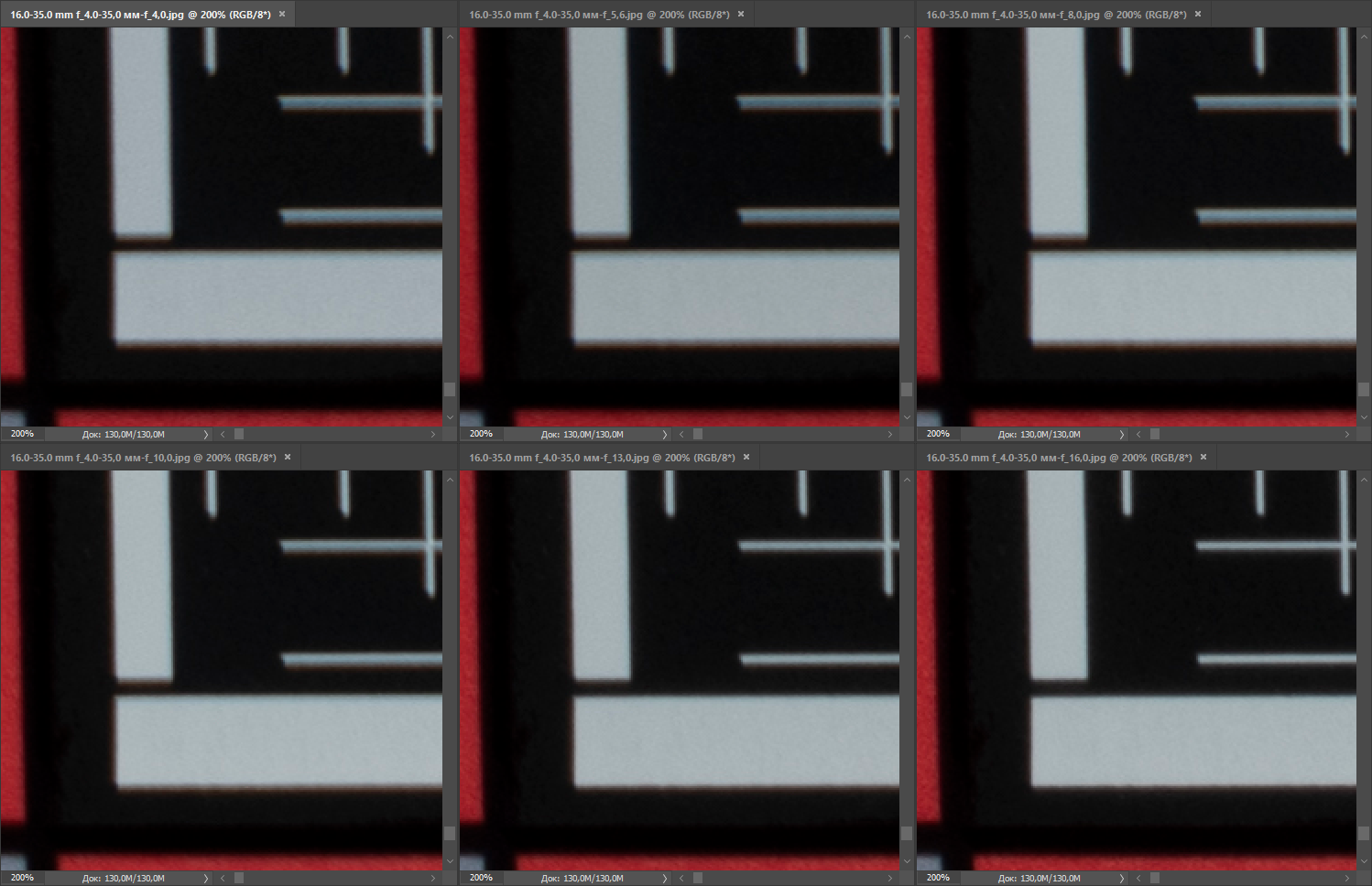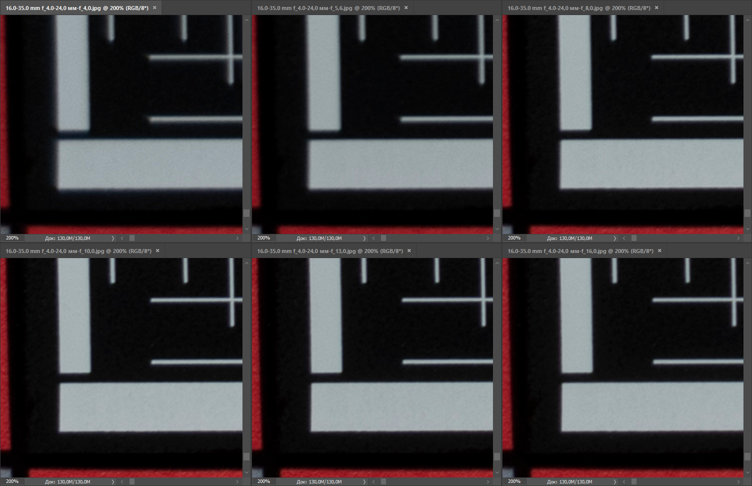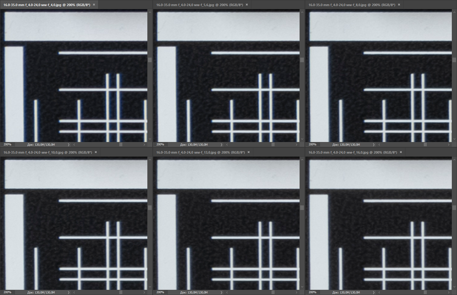 По мотивам проведенного исследования сделаем важное заключение: объектив отличается отличной резкостью в центре и очень хорошей на краях кадра, причем уже начиная с открытой диафрагмы. По мере диафрагмирования резкость растет в большей степени на периферии снимков, так как в центре, кажется, и расти уже некуда. Результаты очень стабильны во всем диапазоне фокусных расстояний. По виньетированию и дисторсии результат хорош, а главное, так же стабилен, как и резкость, при 16 мм, 24 мм и 35 мм.