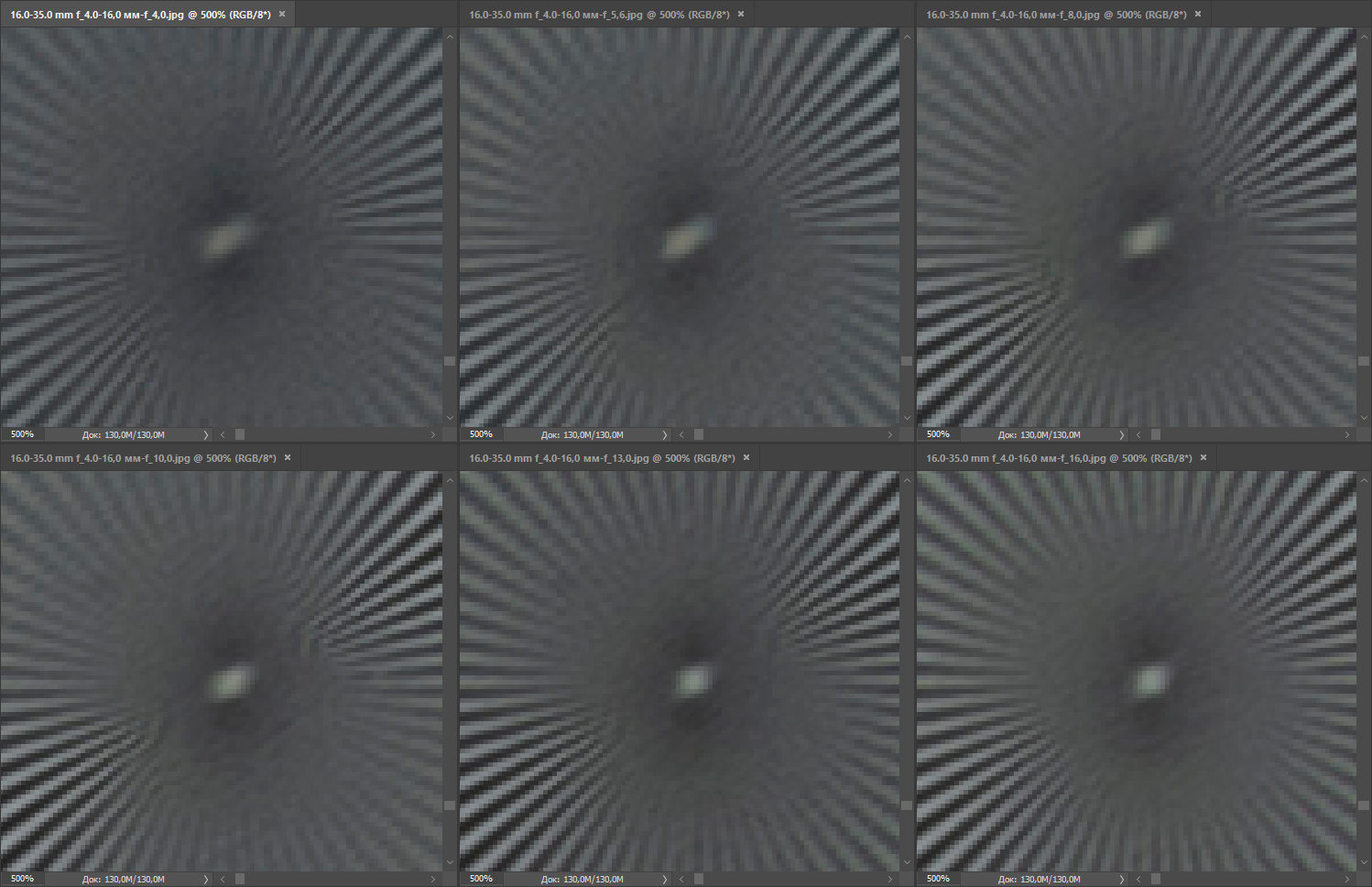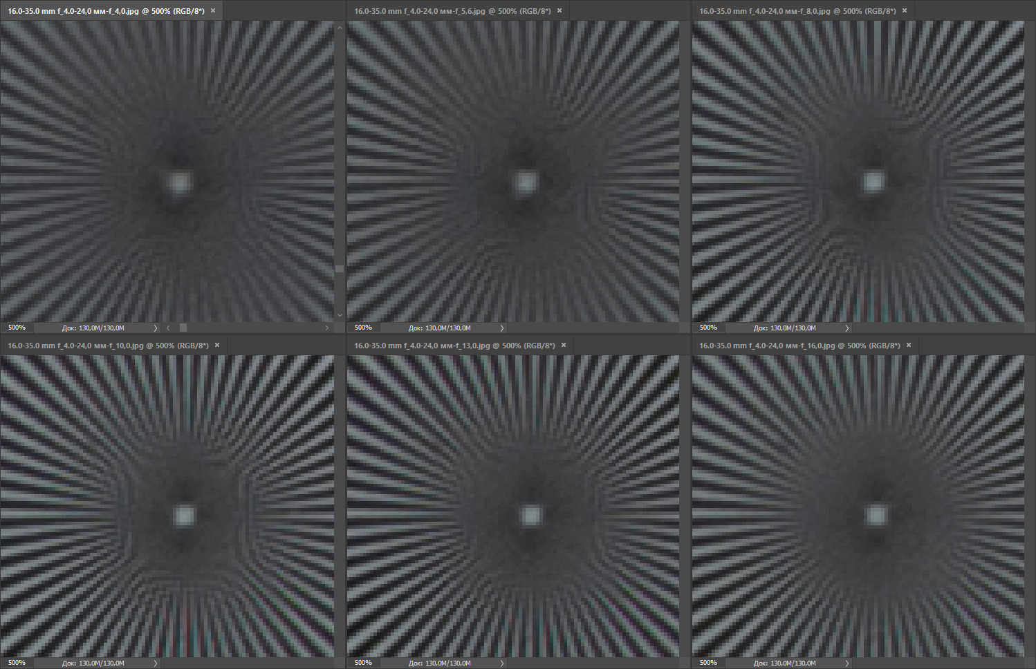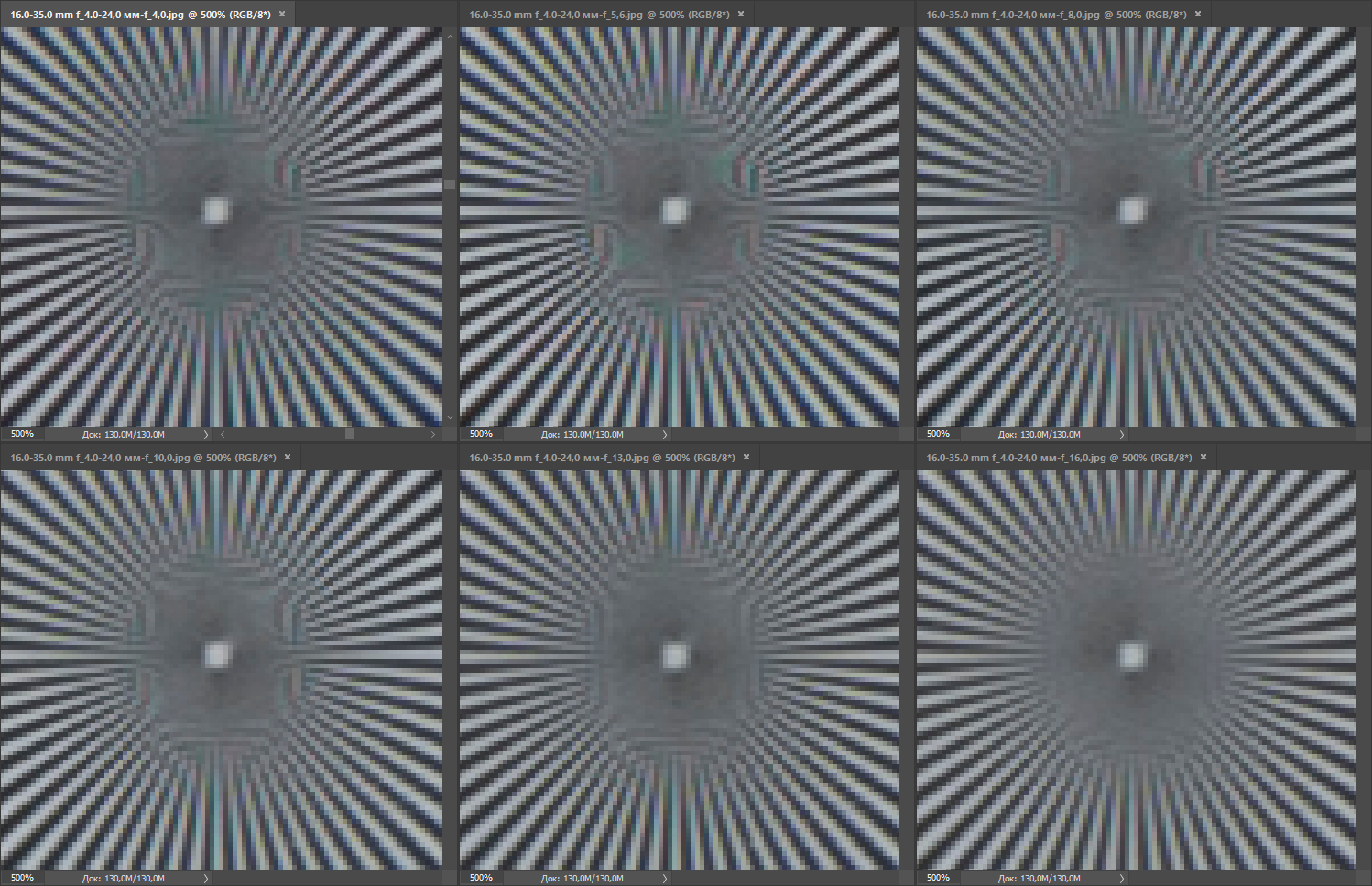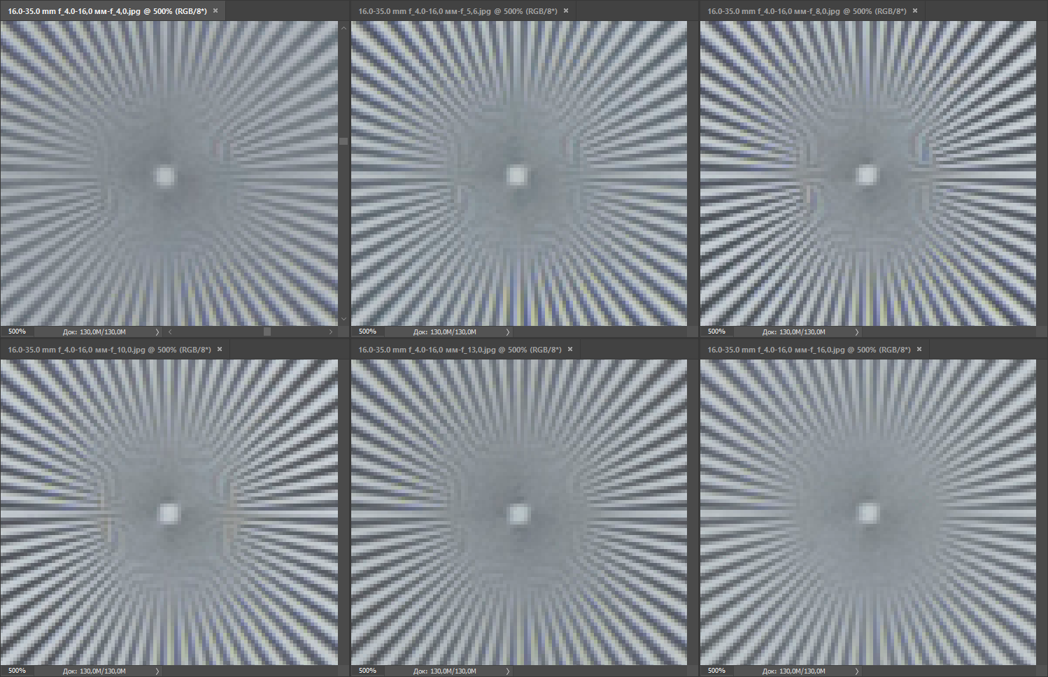 По мотивам проведенного исследования сделаем важное заключение: объектив отличается отличной резкостью в центре и очень хорошей на краях кадра, причем уже начиная с открытой диафрагмы. По мере диафрагмирования резкость растет в большей степени на периферии снимков, так как в центре, кажется, и расти уже некуда. Результаты очень стабильны во всем диапазоне фокусных расстояний. По виньетированию и дисторсии результат хорош, а главное, так же стабилен, как и резкость, при 16 мм, 24 мм и 35 мм.
