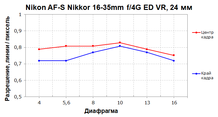 - Разрешение, дисторсия и хроматические аберрации, 24 мм