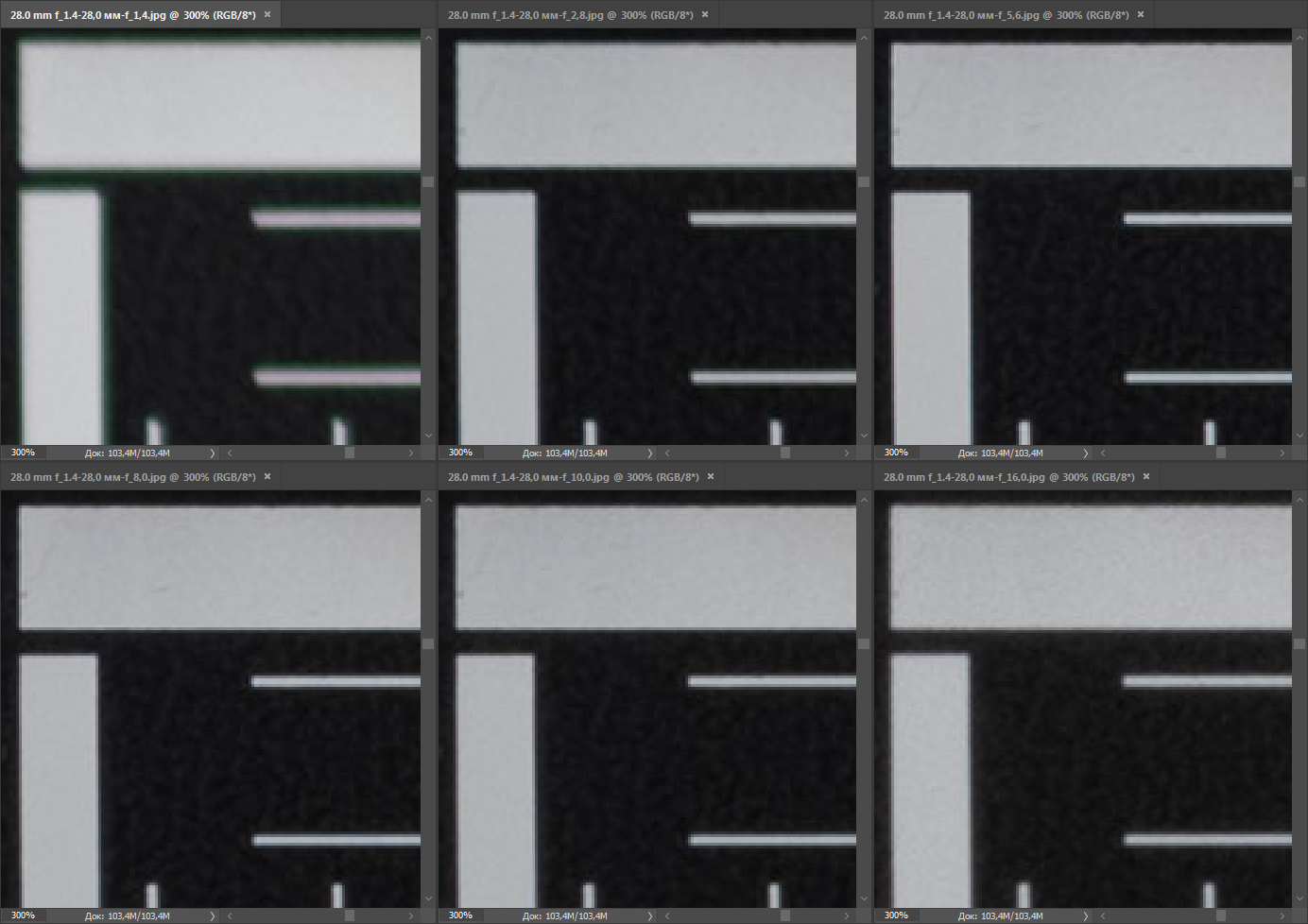 Оба объектива при максимальном раскрытии демонстрируют высокую резкость в центре кадра, а Nikon AF-S Nikkor 28mm F1.4E ED — еще и на периферии. До F4 разница в резкостных показателях сохраняется в пользу более дорогого объектива, но при более сильном диафрагмировании и вплоть до F16 эта разница почти целиком нивелируется.