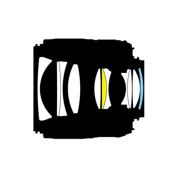 Расположение линз в обоих объективах очень похожее, но у «старшего брата» в оптической схеме на один элемент меньше. Каждый из соперников содержит в конструкции по одной линзе из сверхнизкодисперсионного стекла (маркированы желтым), а Nikon AF-S Nikkor 35mm f/1.8G ED — еще и гибридный асферический элемент (голубой).