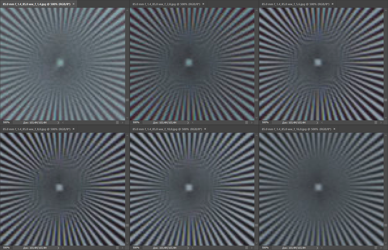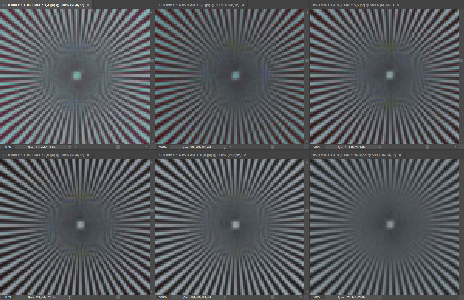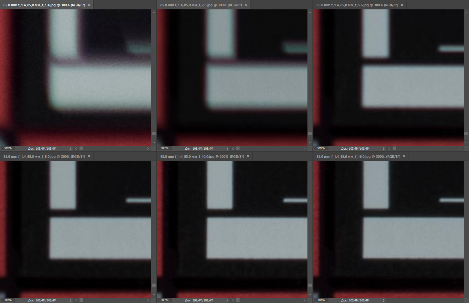 Даже на открытой диафрагме конкуренты обеспечивают отличную резкость изображения в центре кадра. На краях она заметно снижается, но у Nikon AF-S Nikkor 85mm f/1.4G это снижение выражено сильнее. При F4 периферийная резкость выравнивается, и разница между соперниками не определяется. Центральная резкость достигает максимума при F5,6 и держится на этом уровне вплоть до F8, а при F11 начинает снижаться — по-видимому, из-за влияния дифракции.