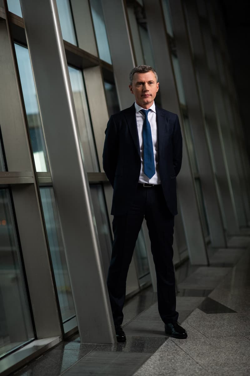 В качестве насадки на прибор использовался серебристый зонт 220 см с рассеивателем. Это позволило создать в меру мягкий свет даже на ростовых портретах, что удобно при съемке директоров обоих полов, а также позволяет ненавязчиво внедрить источник света в уже имеющийся на локации свет. Также это позволило сделать световую схему максимально простой и управляемой, ведь каждый кадр снимался либо в новом месте, либо с нового ракурса, а время на подготовку очень часто минимально. Некоторые руководители находятся в настолько плотном графике, что у них находится иногда всего несколько минут на съемку, и важно тратить их на съемку, а не на выставление света. К тому же, повторюсь, мне важно сохранить видимость легкости съемки, сделать акцент на взаимодействие с объектом, расположить его к себе, не заставлять задумываться о технической составляющей фотосъемки.