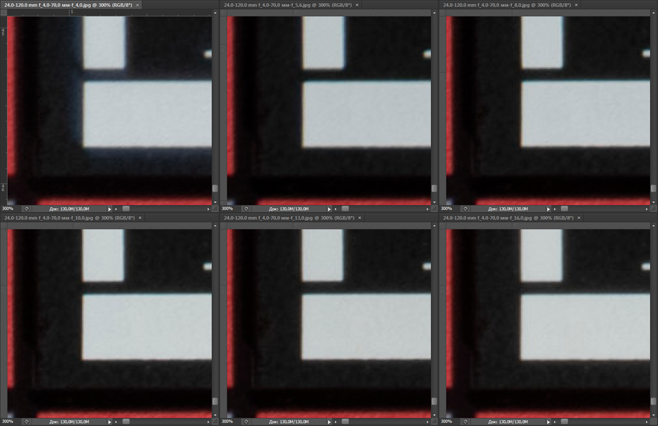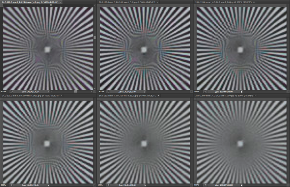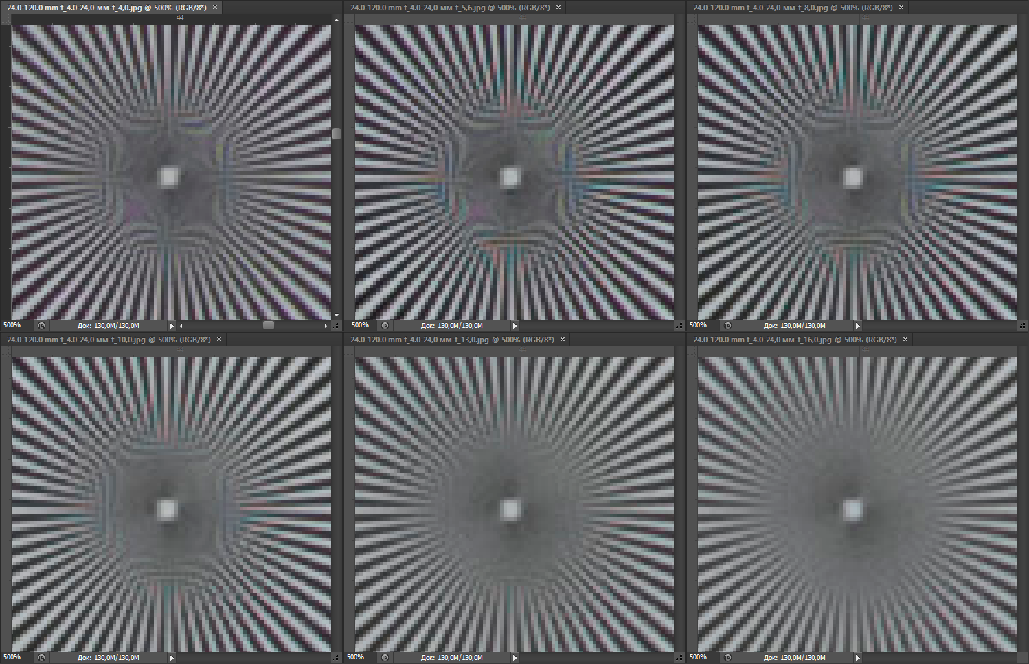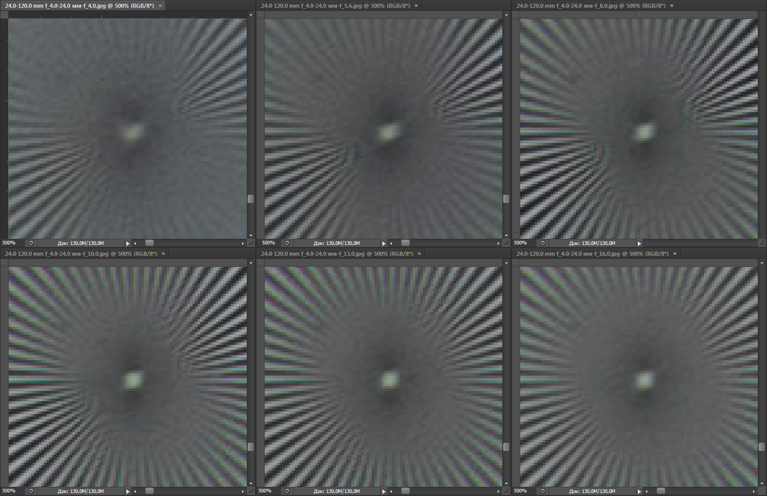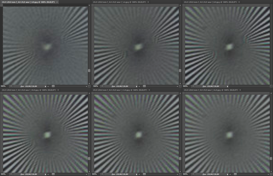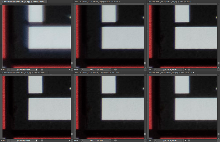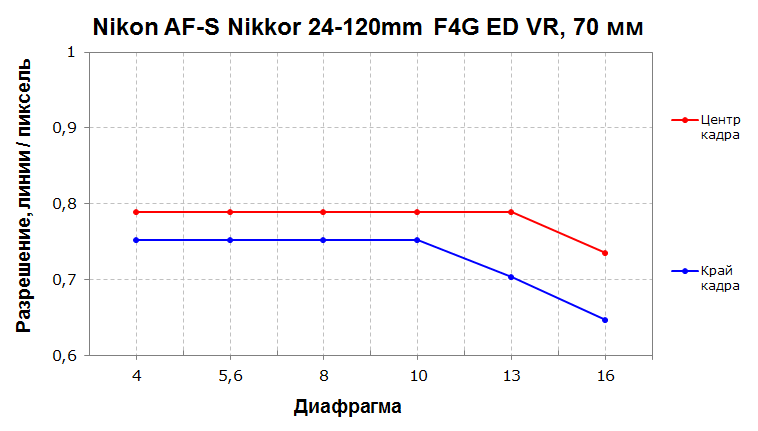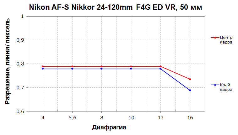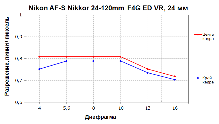 Пагубное влияние дифракции в обоих случаях становится заметным при F16, но у Nikon AF-S Nikkor 24-120mm f/4G ED VR оно выражено сильнее.