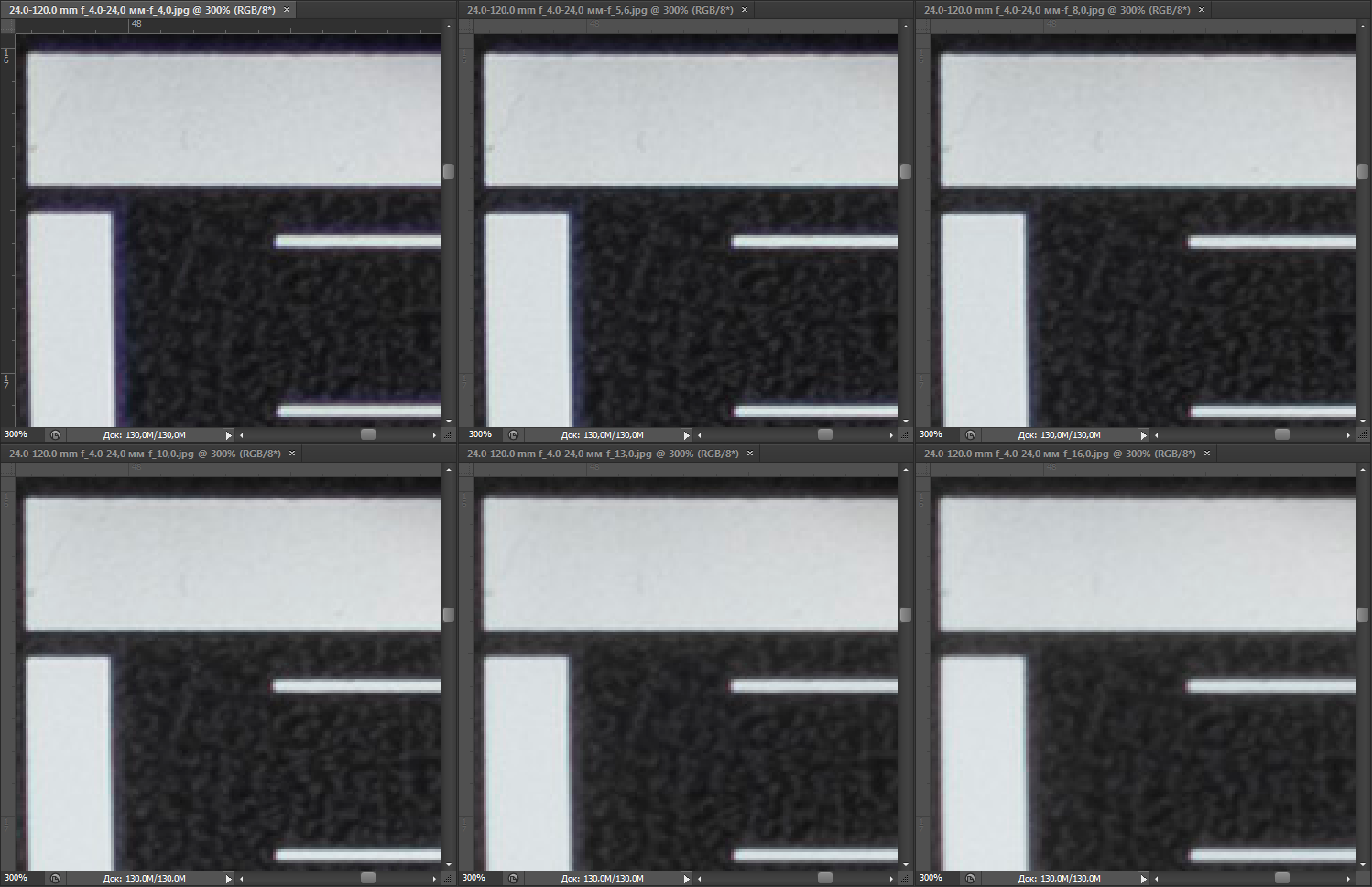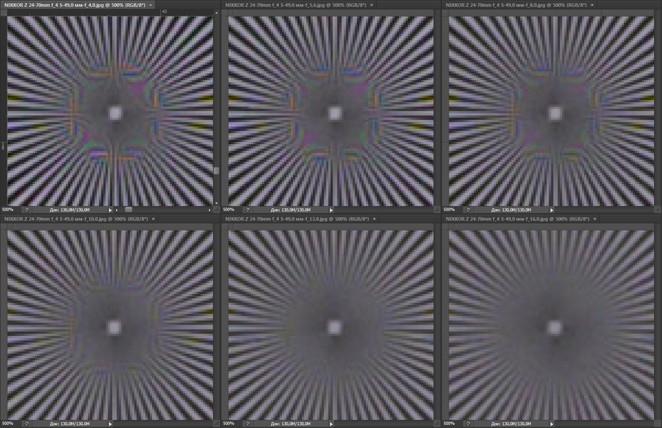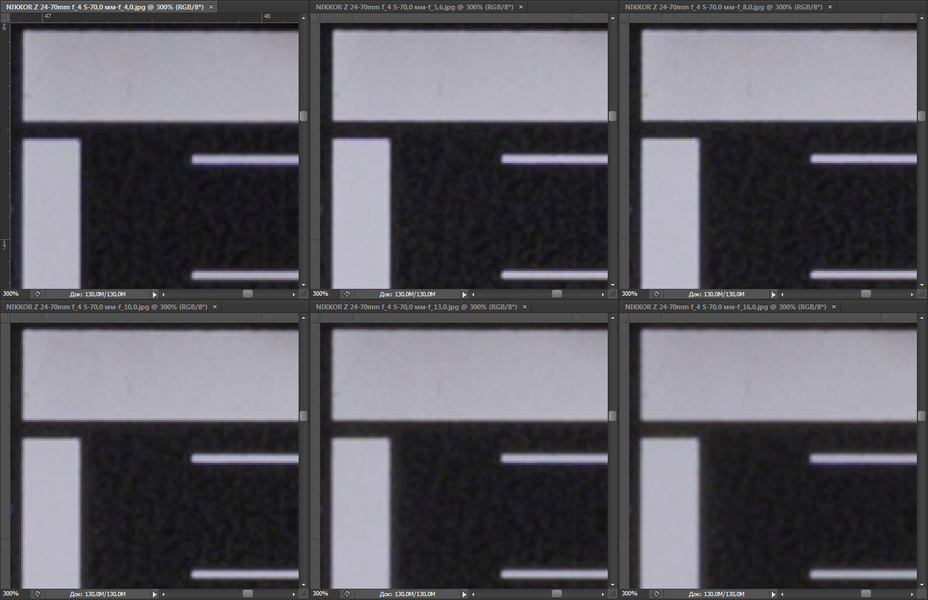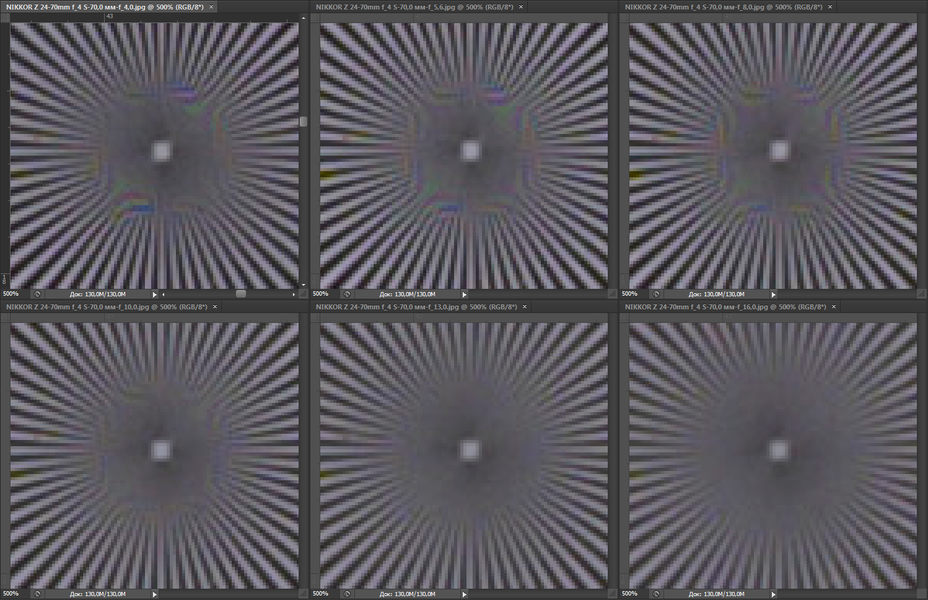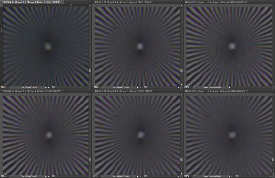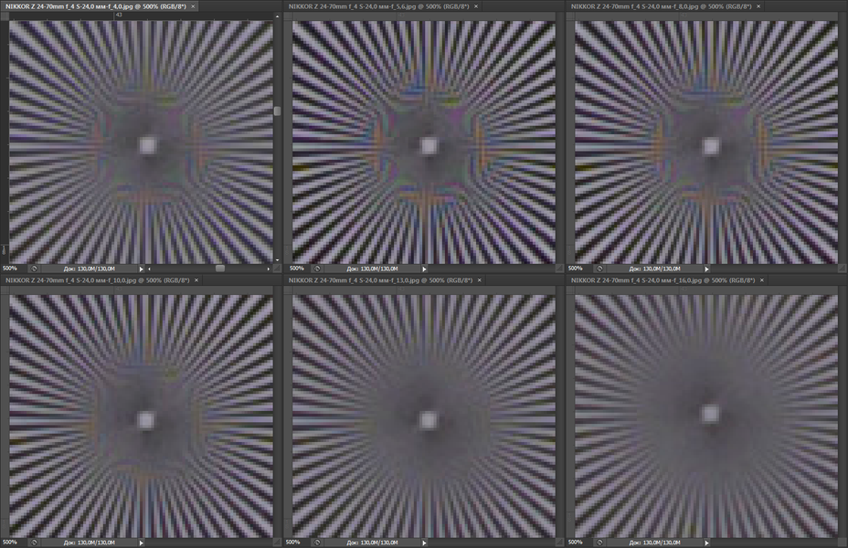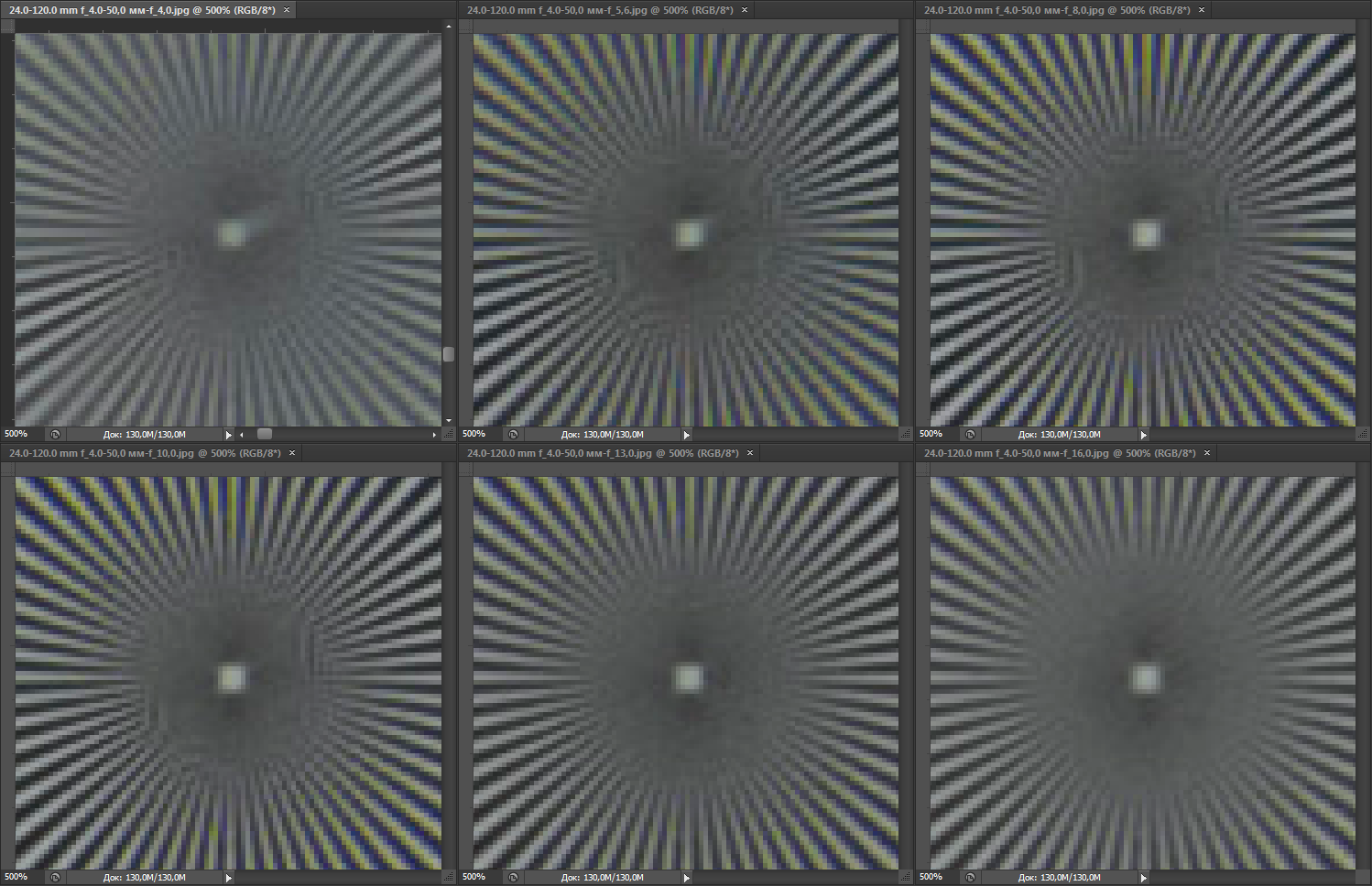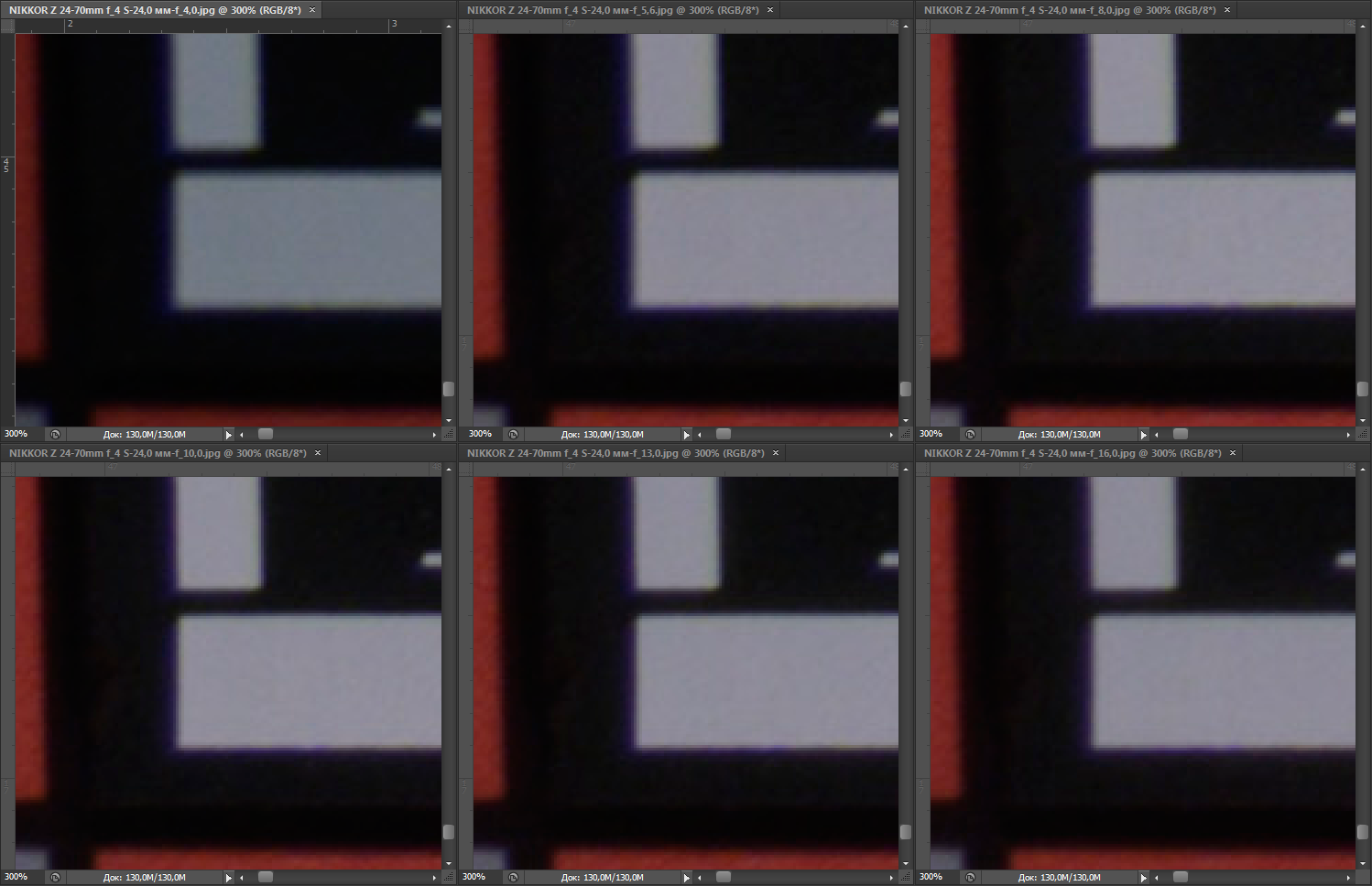 Пагубное влияние дифракции в обоих случаях становится заметным при F16, но у Nikon AF-S Nikkor 24-120mm f/4G ED VR оно выражено сильнее.