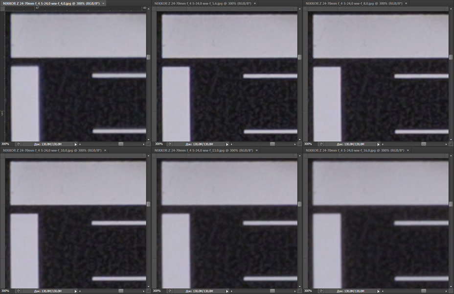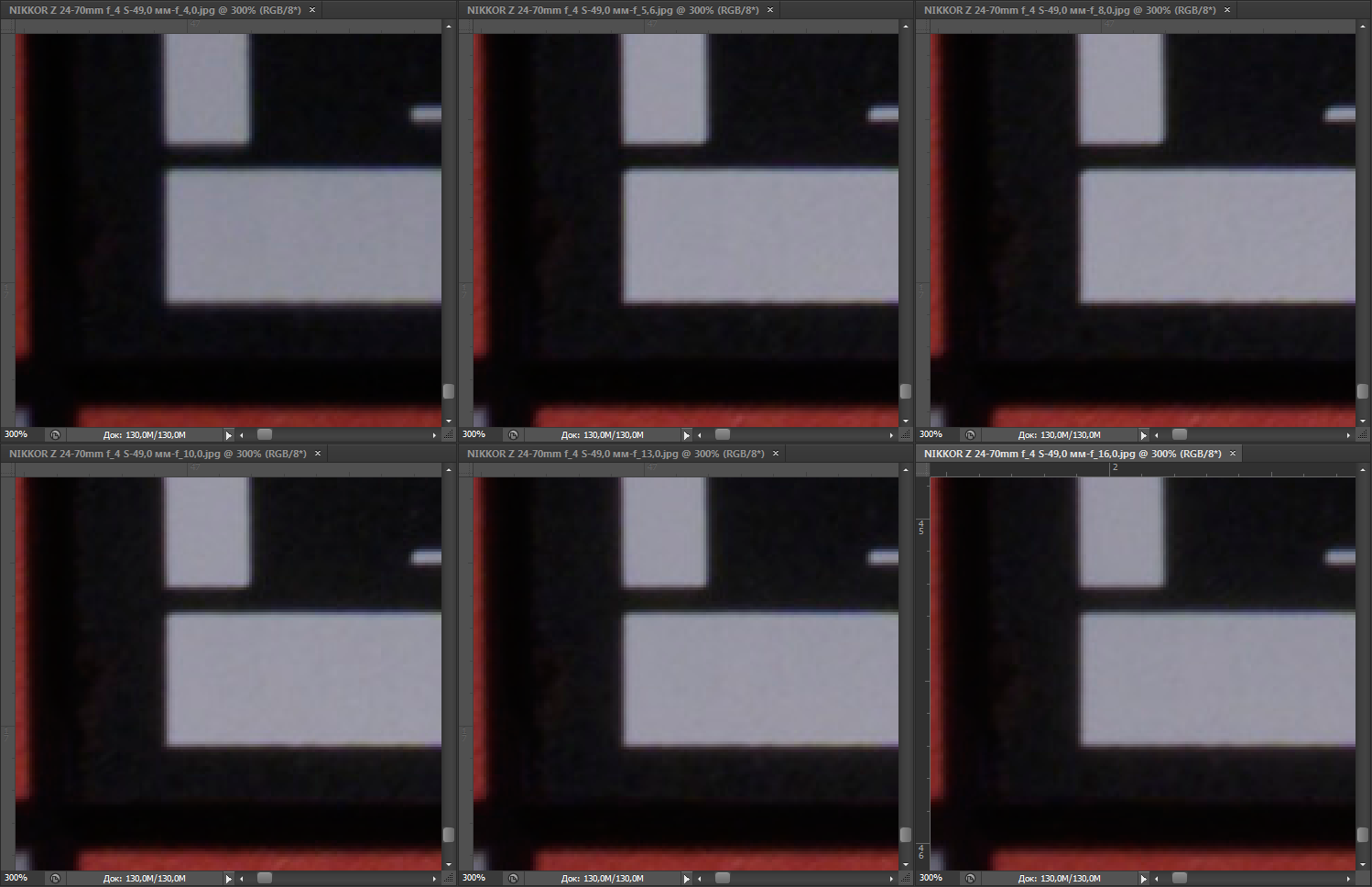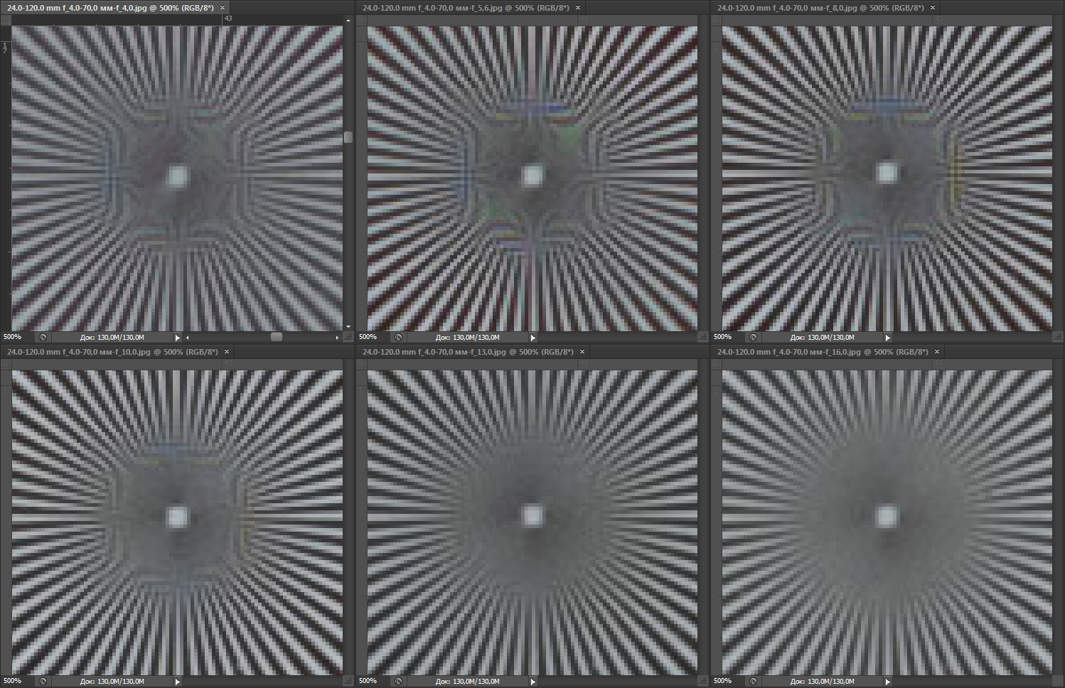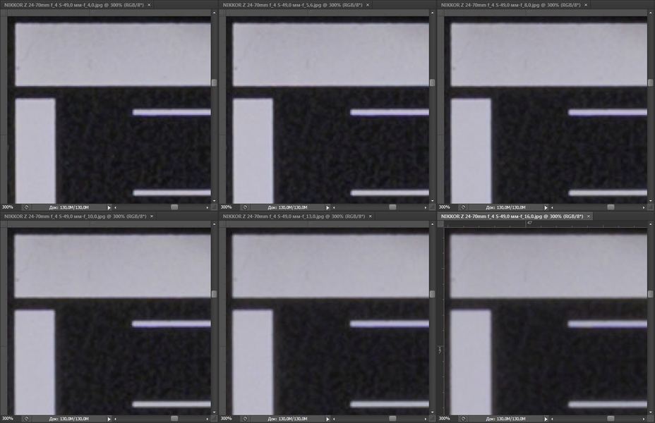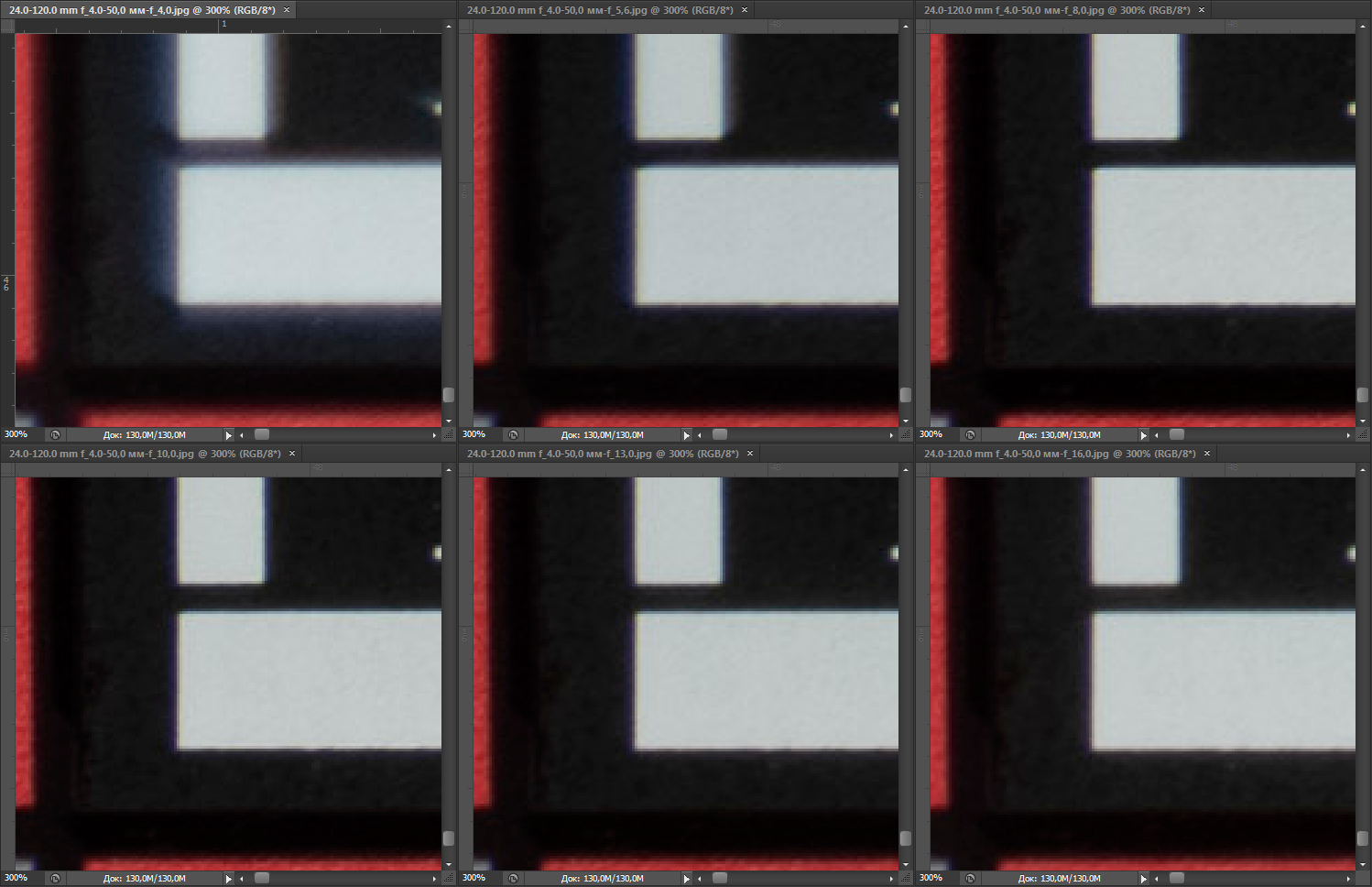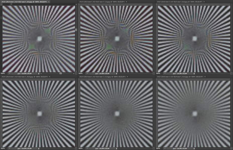 Пагубное влияние дифракции в обоих случаях становится заметным при F16, но у Nikon AF-S Nikkor 24-120mm f/4G ED VR оно выражено сильнее.