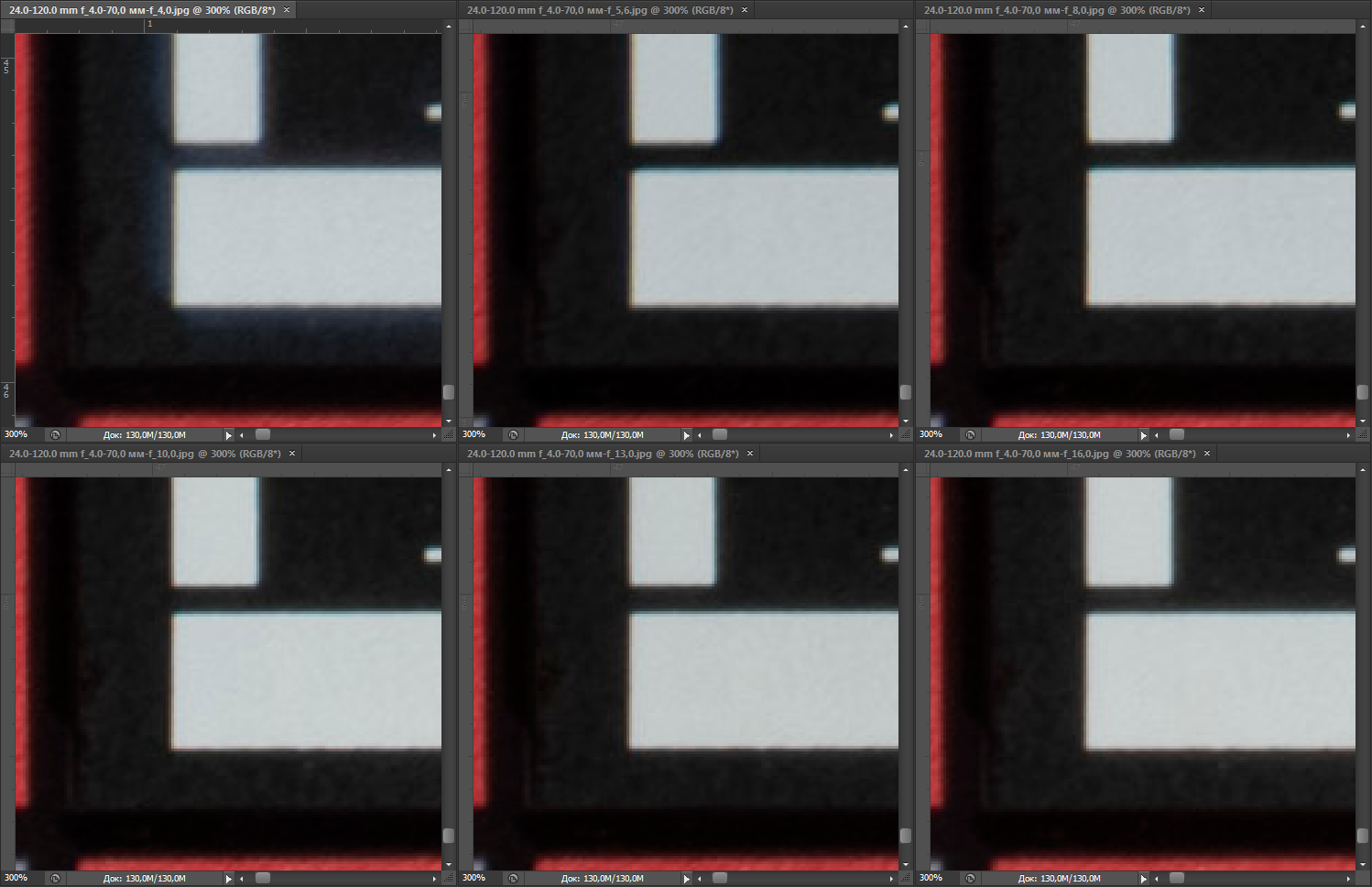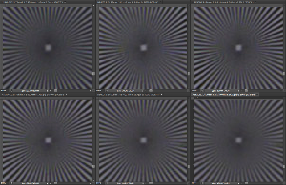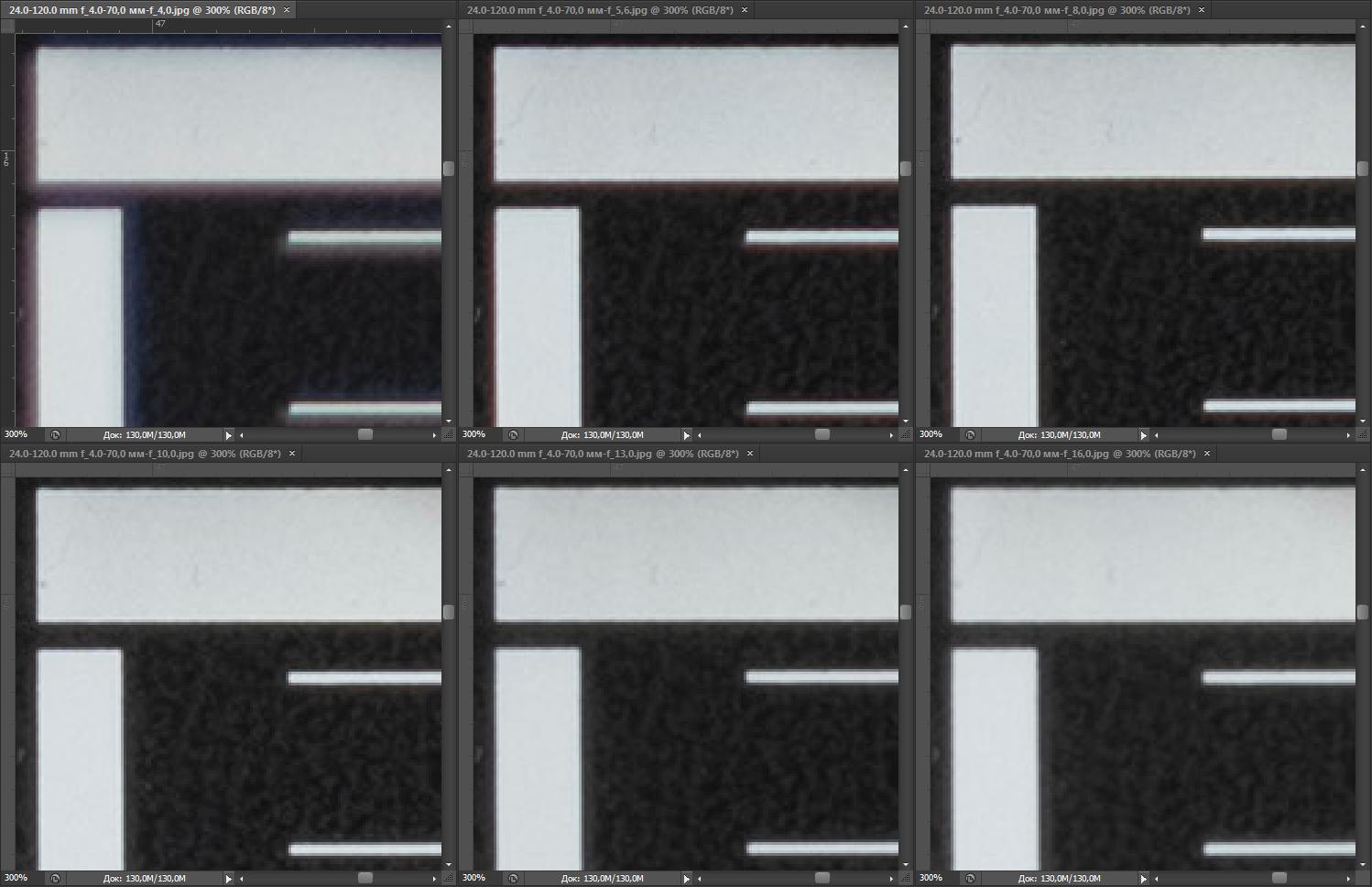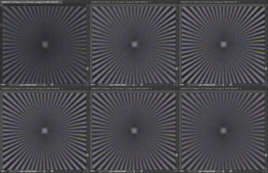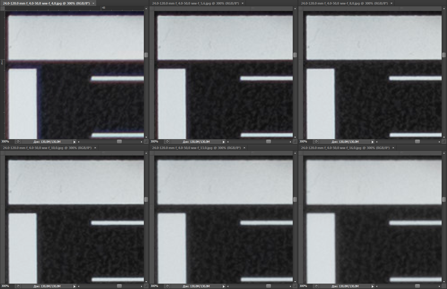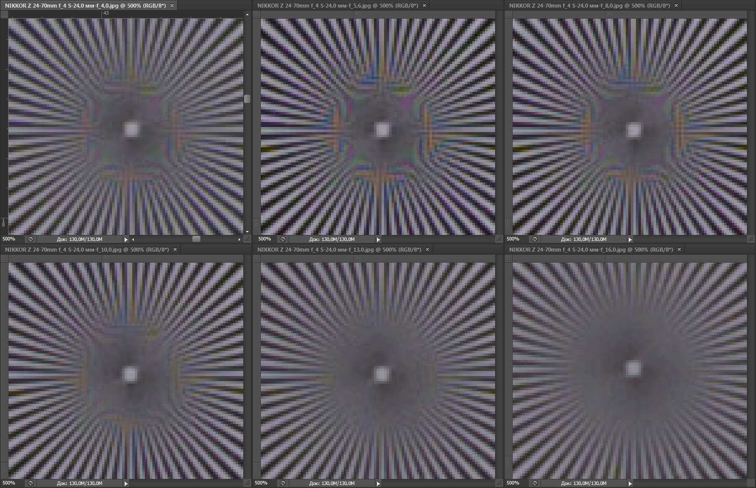 Пагубное влияние дифракции в обоих случаях становится заметным при F16, но у Nikon AF-S Nikkor 24-120mm f/4G ED VR оно выражено сильнее.