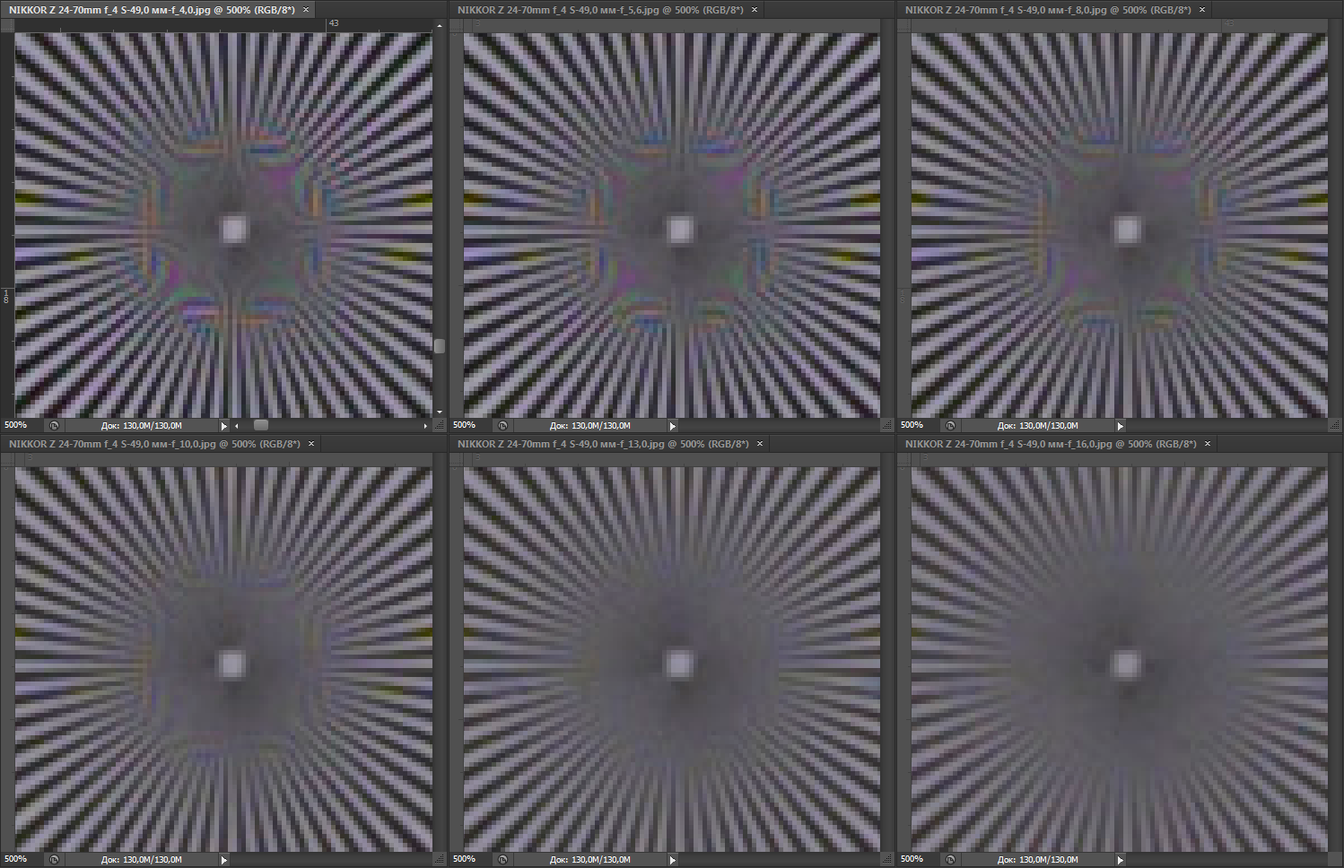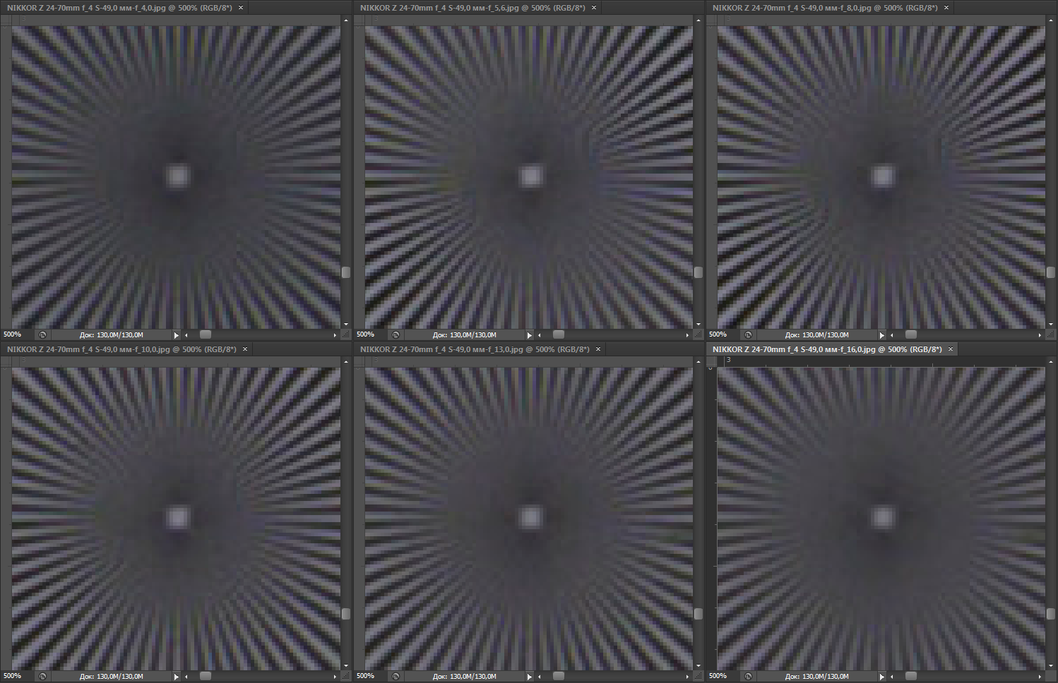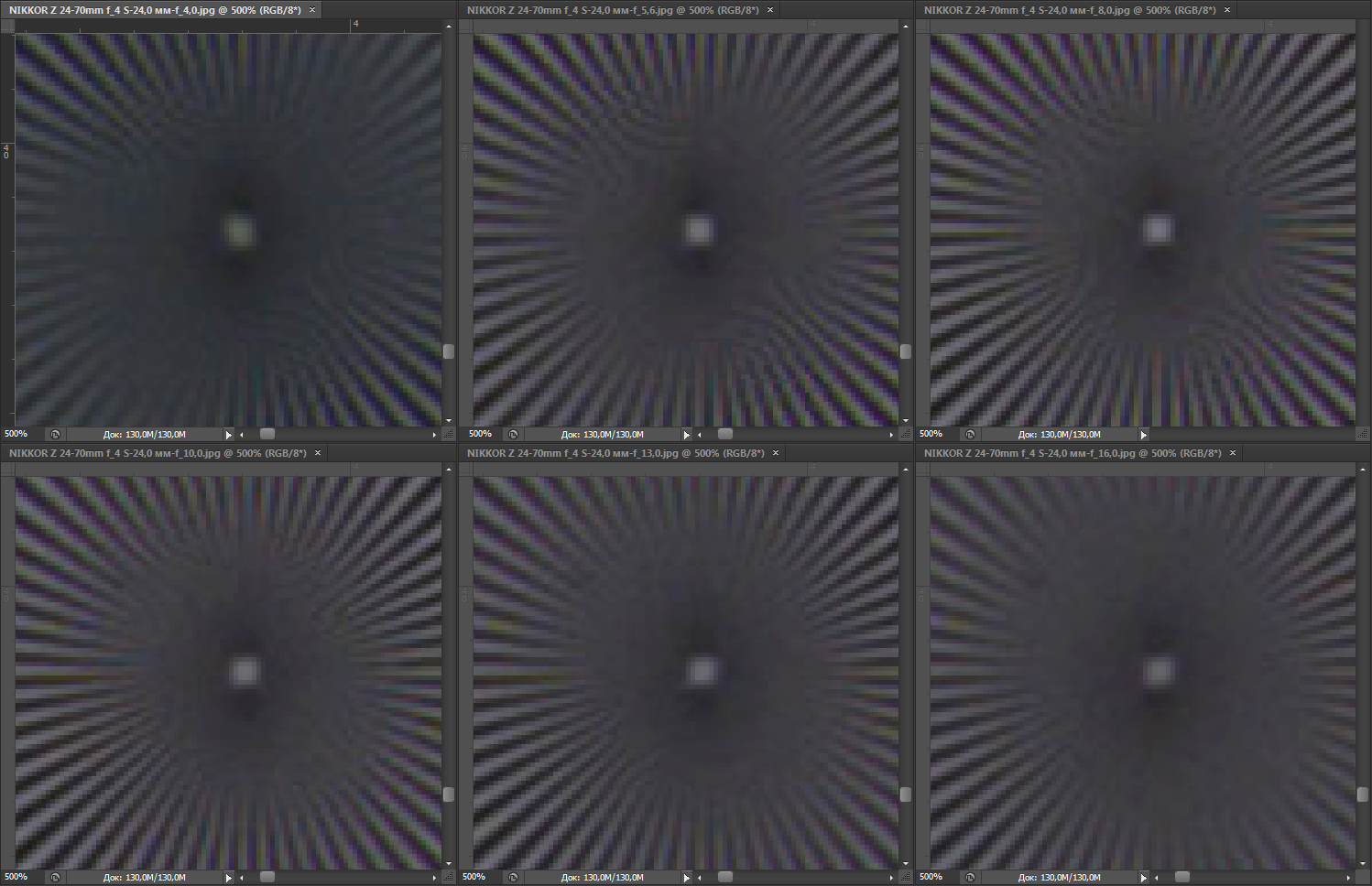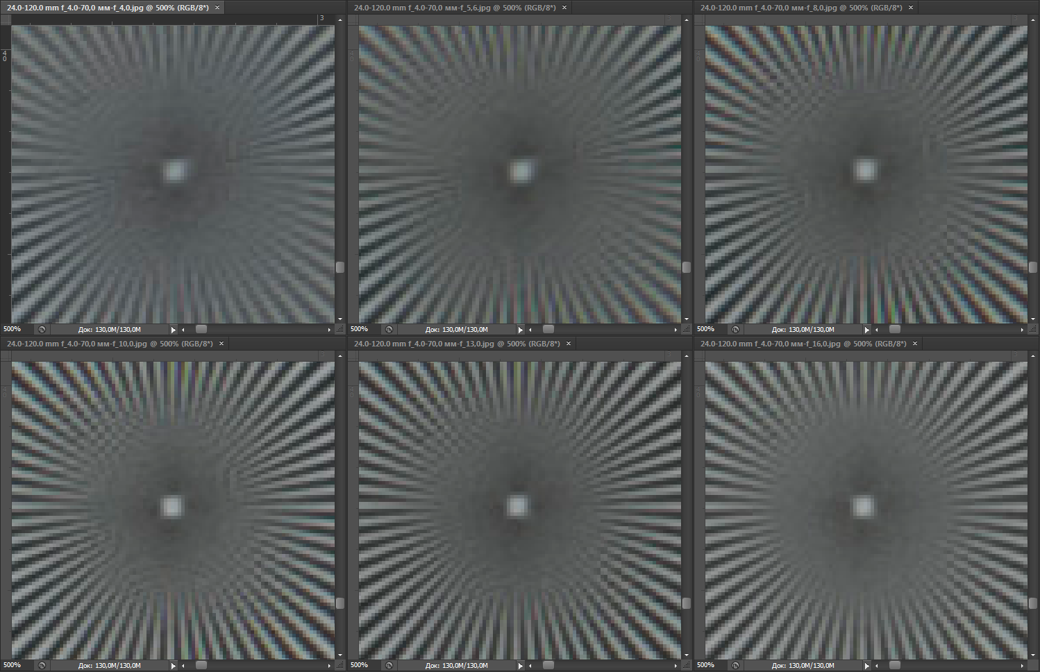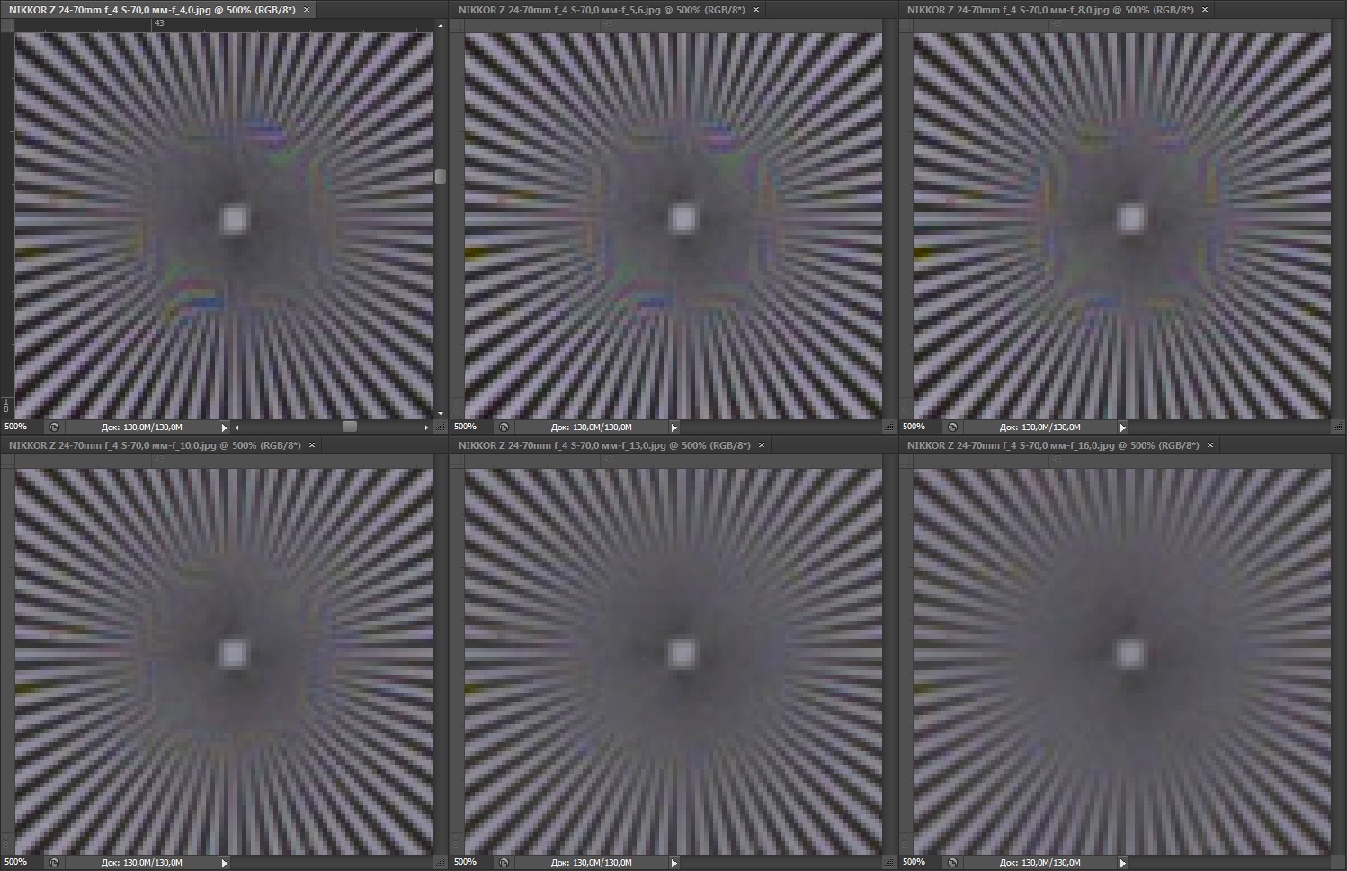 Пагубное влияние дифракции в обоих случаях становится заметным при F16, но у Nikon AF-S Nikkor 24-120mm f/4G ED VR оно выражено сильнее.