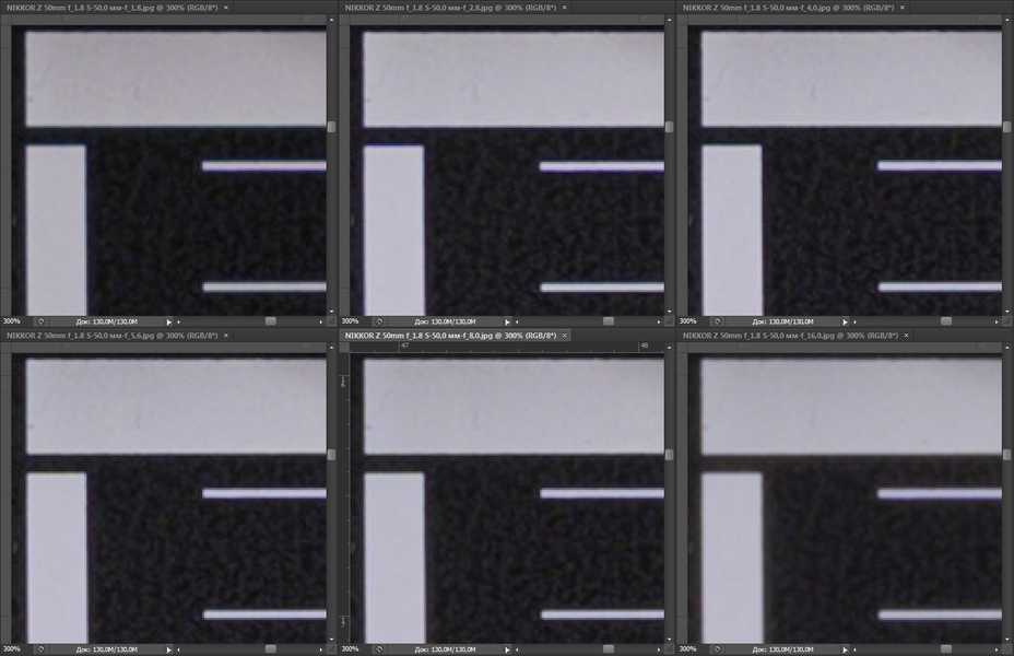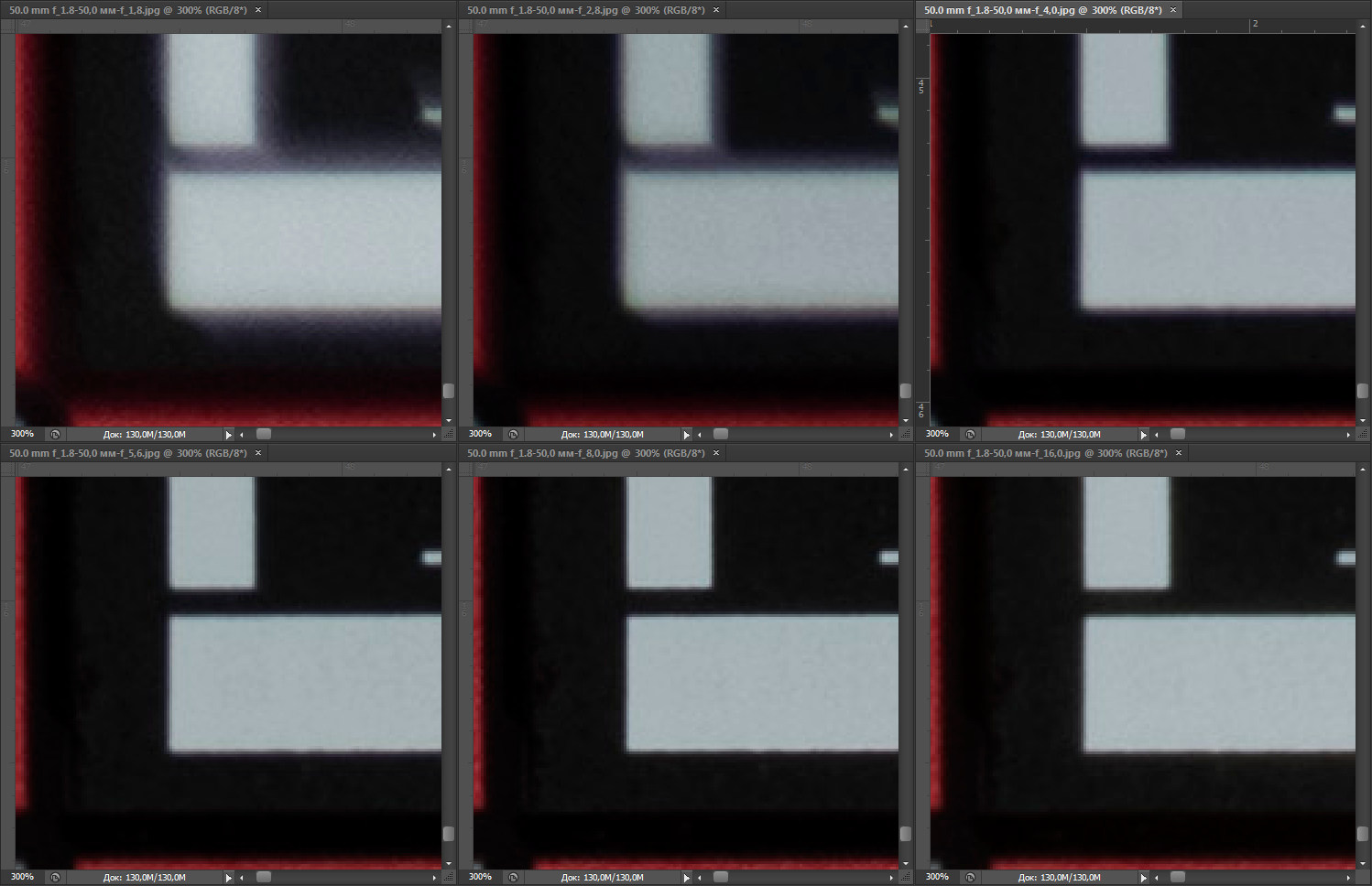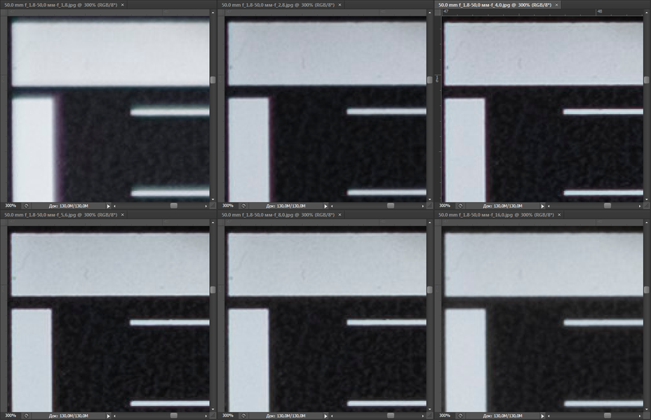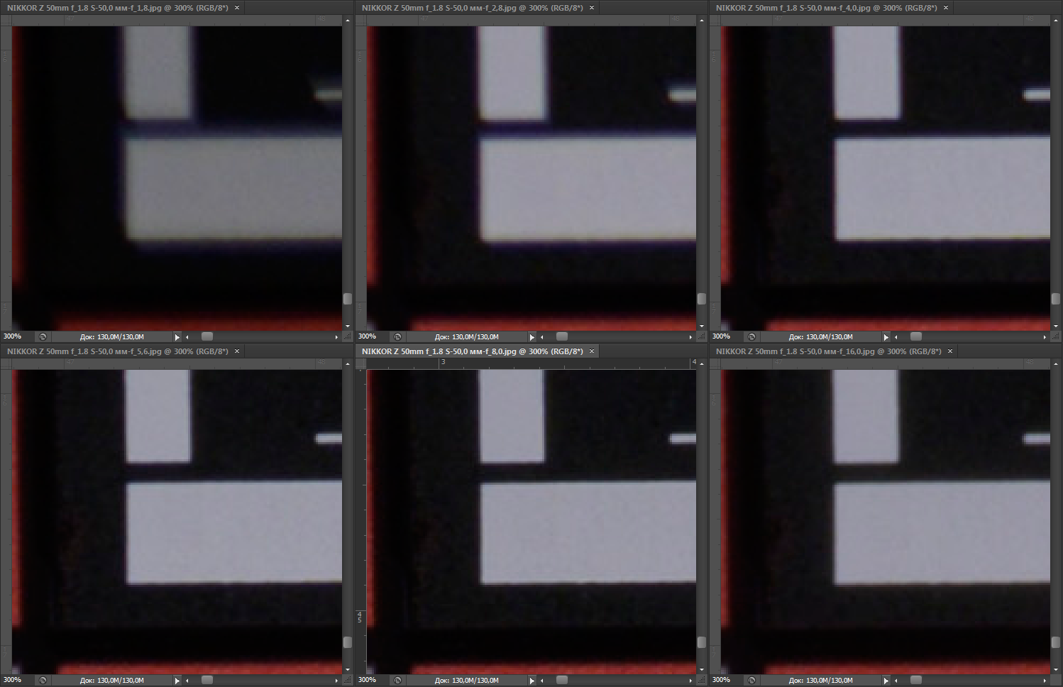 Сравним теперь качество изображения в более подробном тесте при разных значениях диафрагмы.