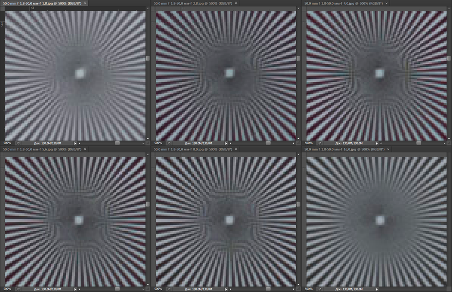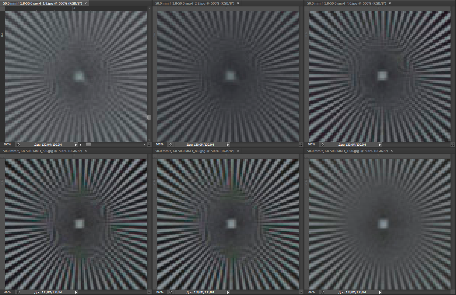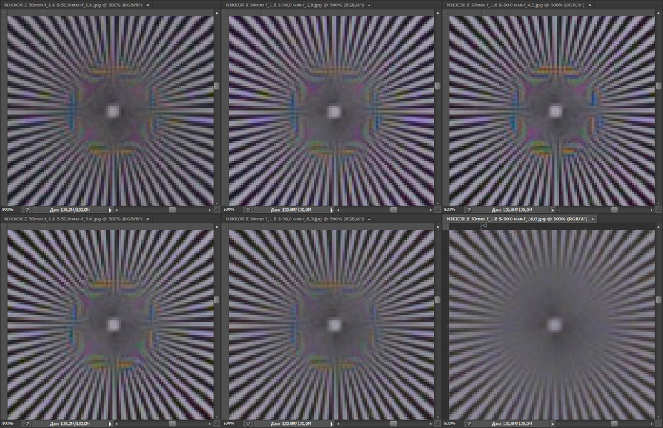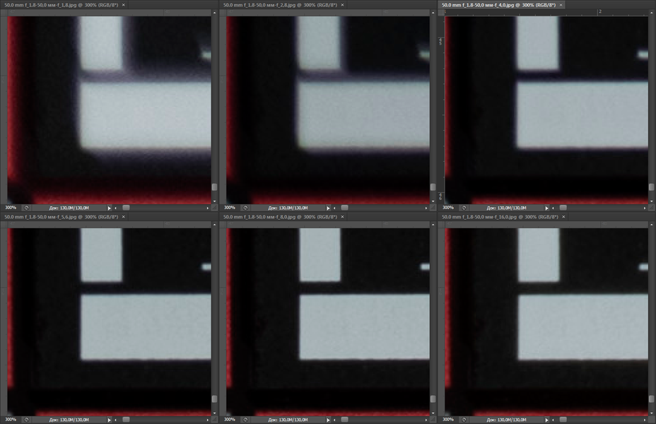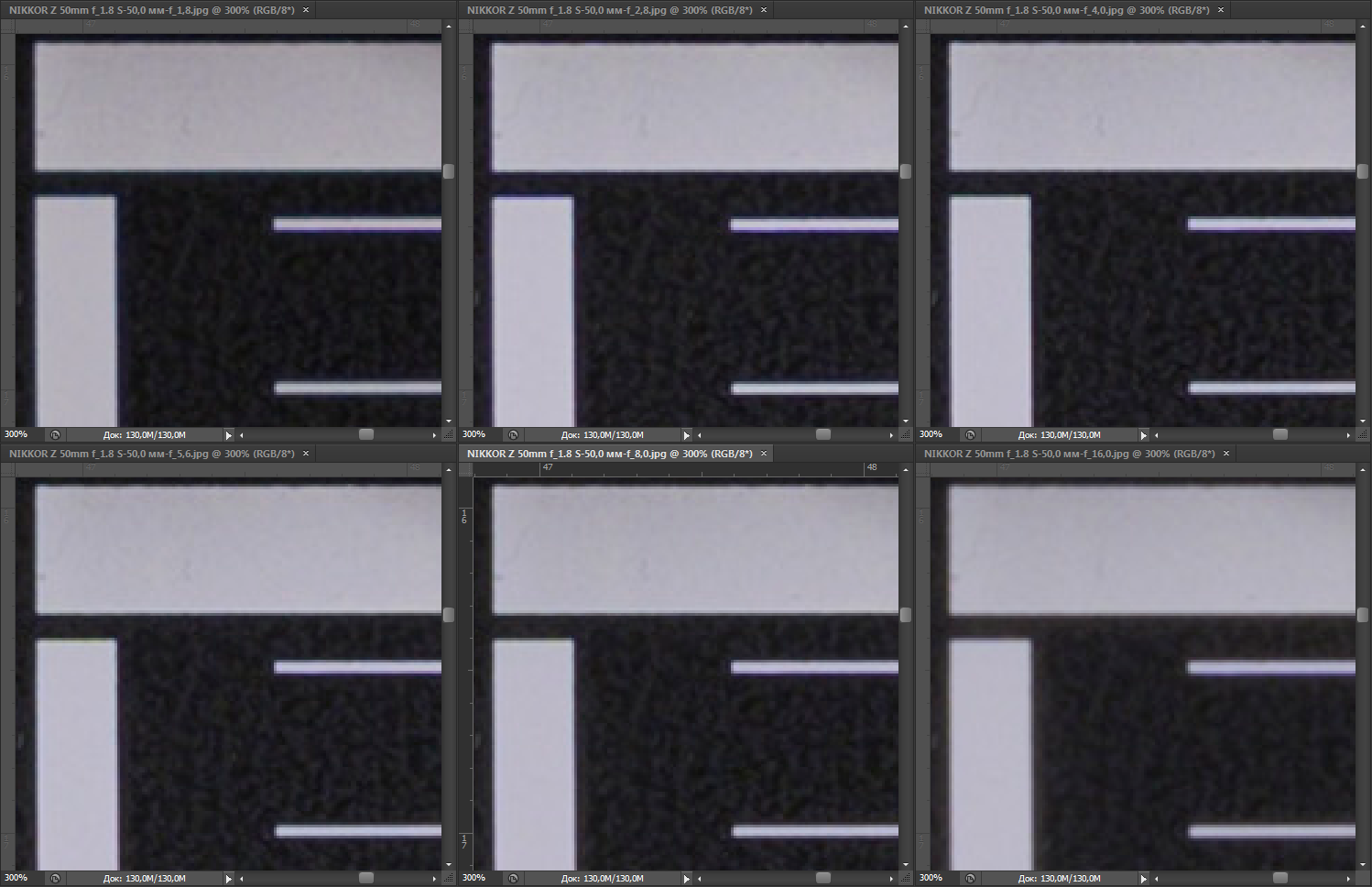 Сравним теперь качество изображения в более подробном тесте при разных значениях диафрагмы.