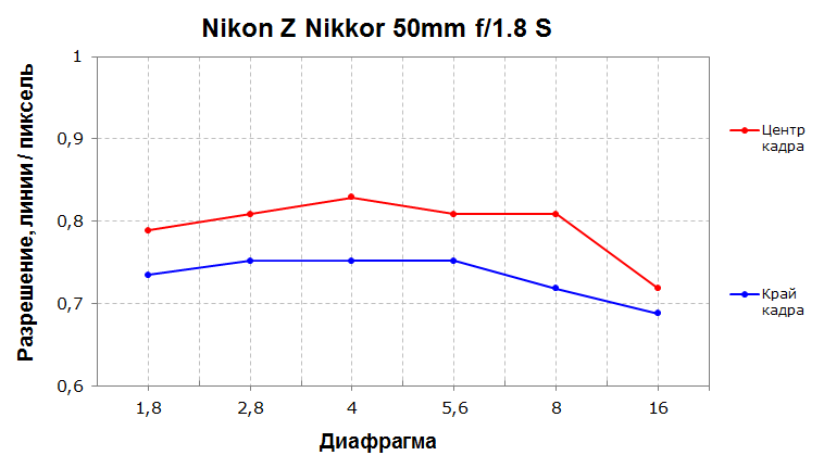 Выходит, что Nikon Z Nikkor 50mm f/1.8 S предпочтительнее использовать при максимальном и субмаксимальном раскрытии, а Nikon AF-S Nikkor 50mm f/1.8G — при диафрагмировании.