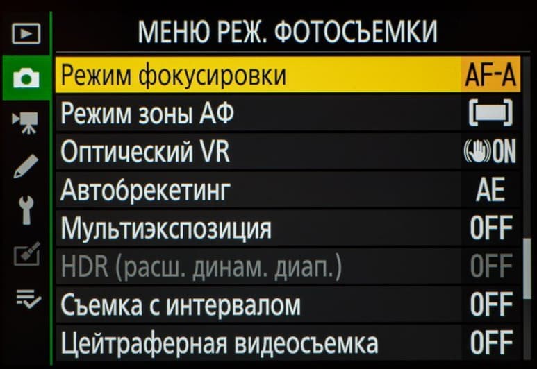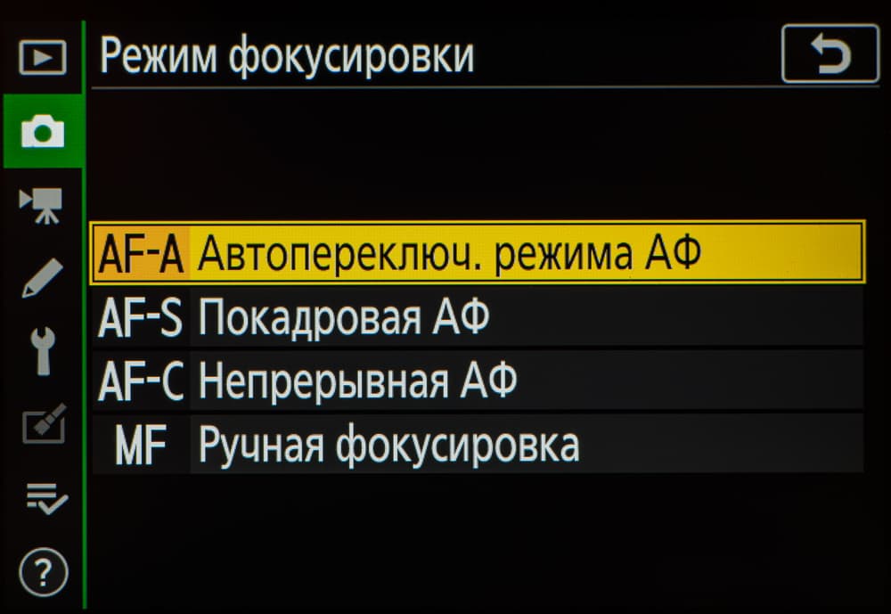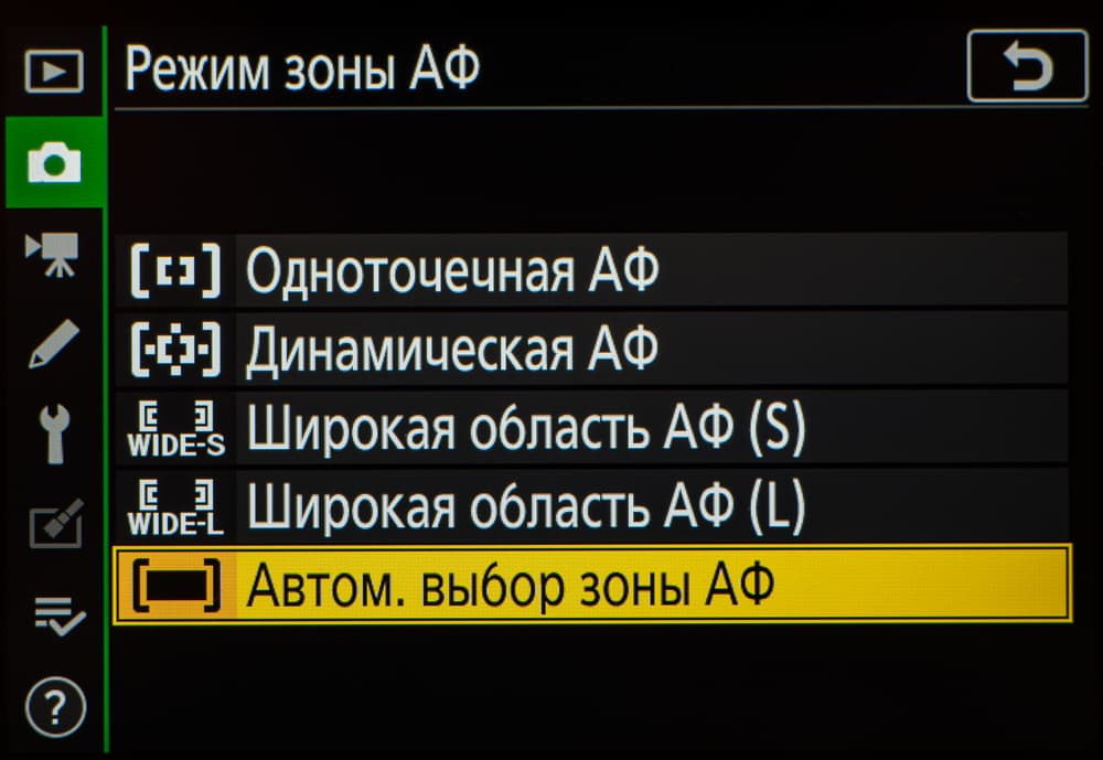 - однокадровая или следящая автоматическая фокусировка (в зависимости от динамики сцены),