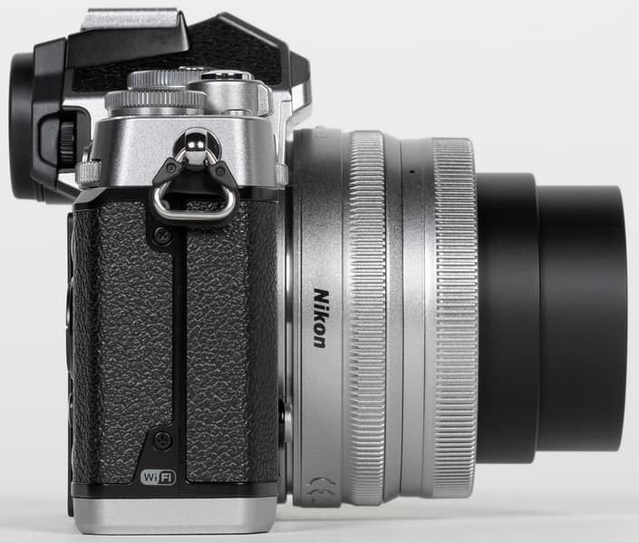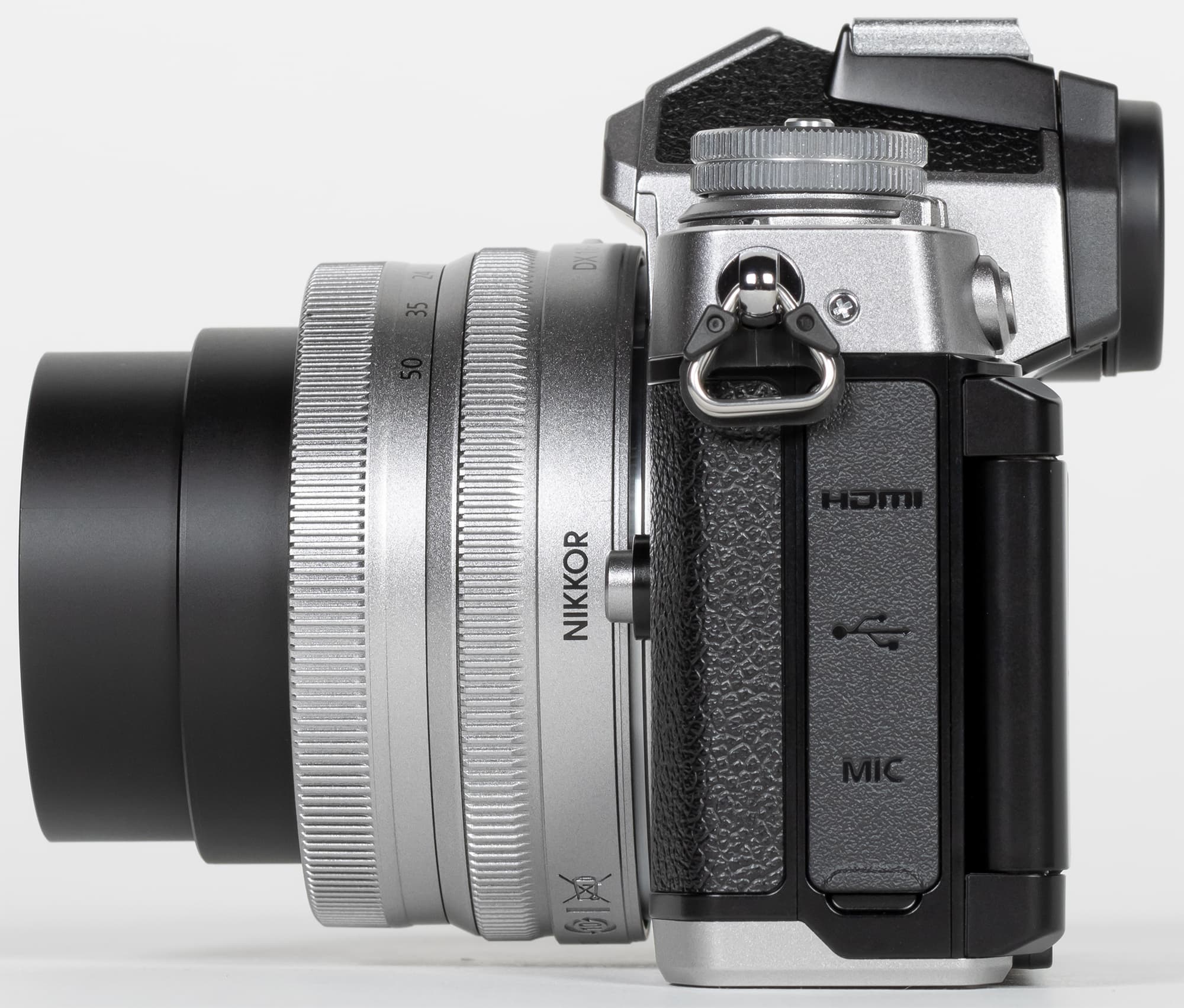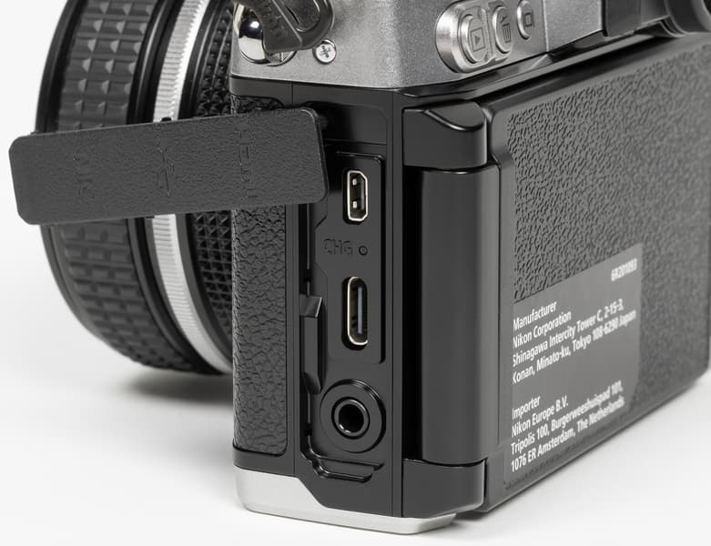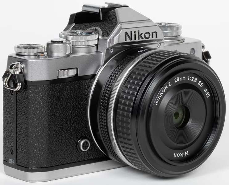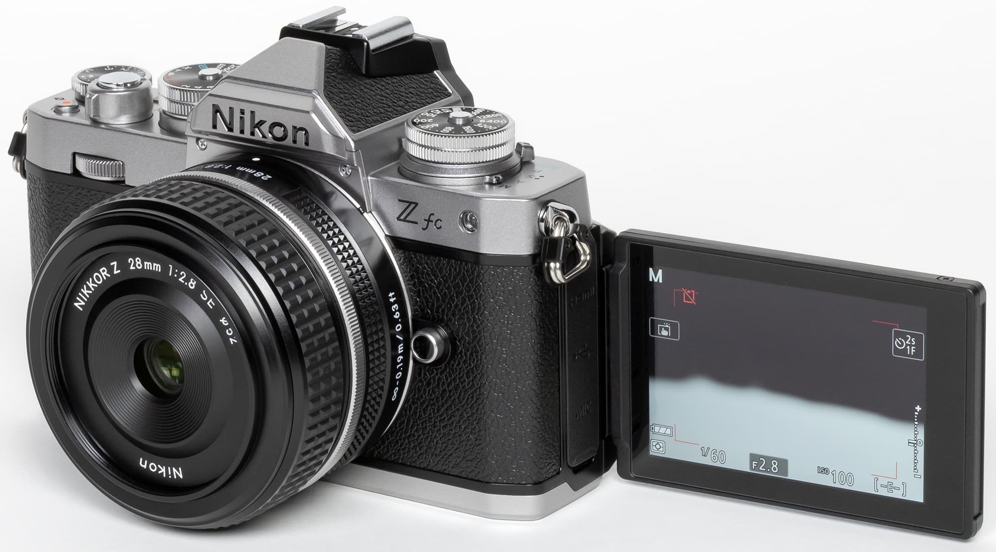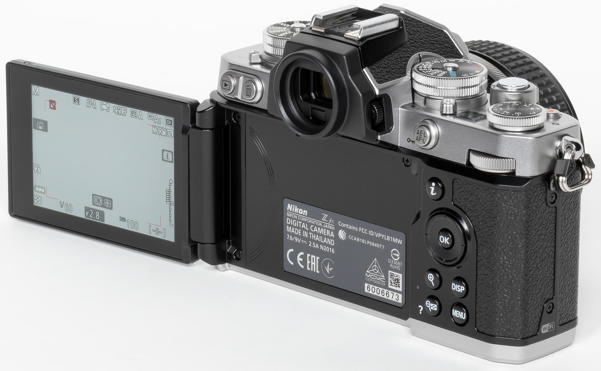 Новая беззеркальная камера Nikon Z fc с сенсором DX (типоразмер APS-C) разительно отличается от других аппаратов производителя и от большинства конкурирующих моделей своим внешним видом и органами управления. Ее облик в стиле «ретро» более всего напоминает пленочные механические камеры Nikon 70-х годов XX в. Это единственная беззеркальная камера производителя, которая оснащается дисплеем, подвижным по всем осям. Однако в угоду ретро-дизайну и упрощению модели исчезли ручка для удержания аппарата правой рукой и встроенная вспышка.