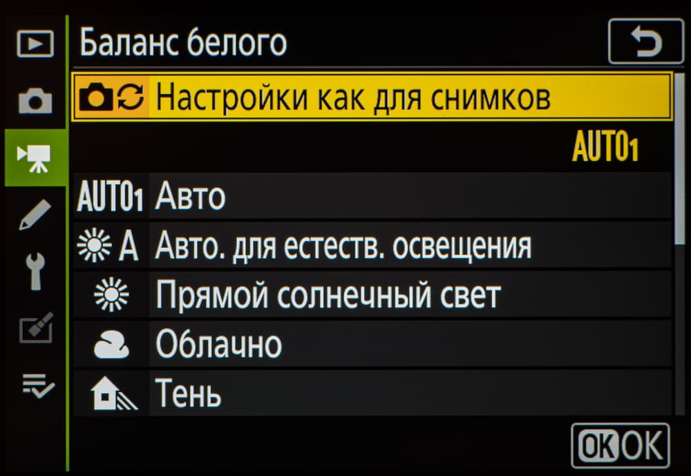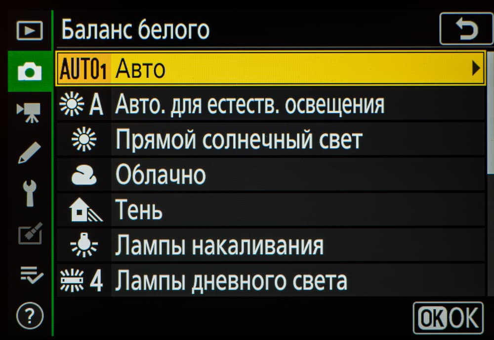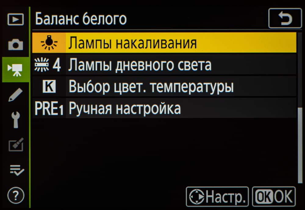 3 Для всех режимов (кроме прямой установки цветовой температуры) возможна тонкая настройка.