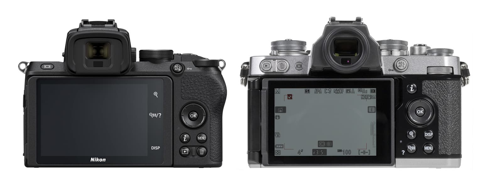 Если сравнить новинку Nikon Z fc с Nikon Z50, можно заметить, что сенсор, процессор, механический затвор, видоискатель и батарея унаследованы целиком; рабочий и расширенный диапазоны эквивалентной светочувствительности и скорострельность не изменились. Слот для карт SDXC по-прежнему один и поддерживает лишь носители низкоскоростного стандарта UHS-I. Главные приобретения продиктованы редизайном облика новинки, который напоминает старые пленочные фотоаппараты производителя, особенно, как отмечают некоторые аналитики, легендарную Nikon FM2, выпускавшуюся с 1982 по 2001 г. С принципиальной точки зрения это выразилось трояко: