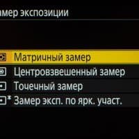 | Автоэкспонометрия (АЭ) | TTL; матричная, центровзвешенная, точечная, по зоне максимальной яркости |