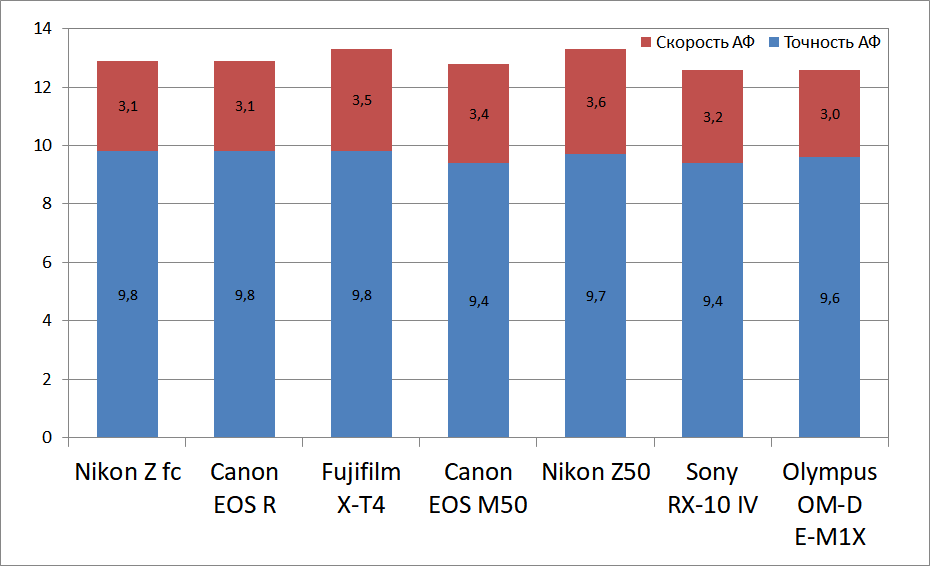 Автофокус Nikon Z fc по точности практически не уступает топовым камерам, что уже давно стало нормой, а по скорости находится на уровне Canon EOS R и при этом чуть проигрывает Nikon Z50.