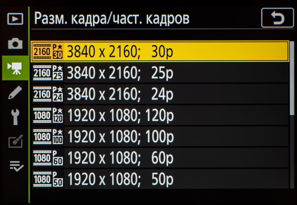 | Форматы записи видео | UHD 4K: 3840×2160 при 30/25/24p; Full HD: 1920×1080 при 120/100/60/50/30/25/24p; 1920×1080 (замедленная съемка) при 30p (×4), 25p (×4) или 24p (×5)2 |
