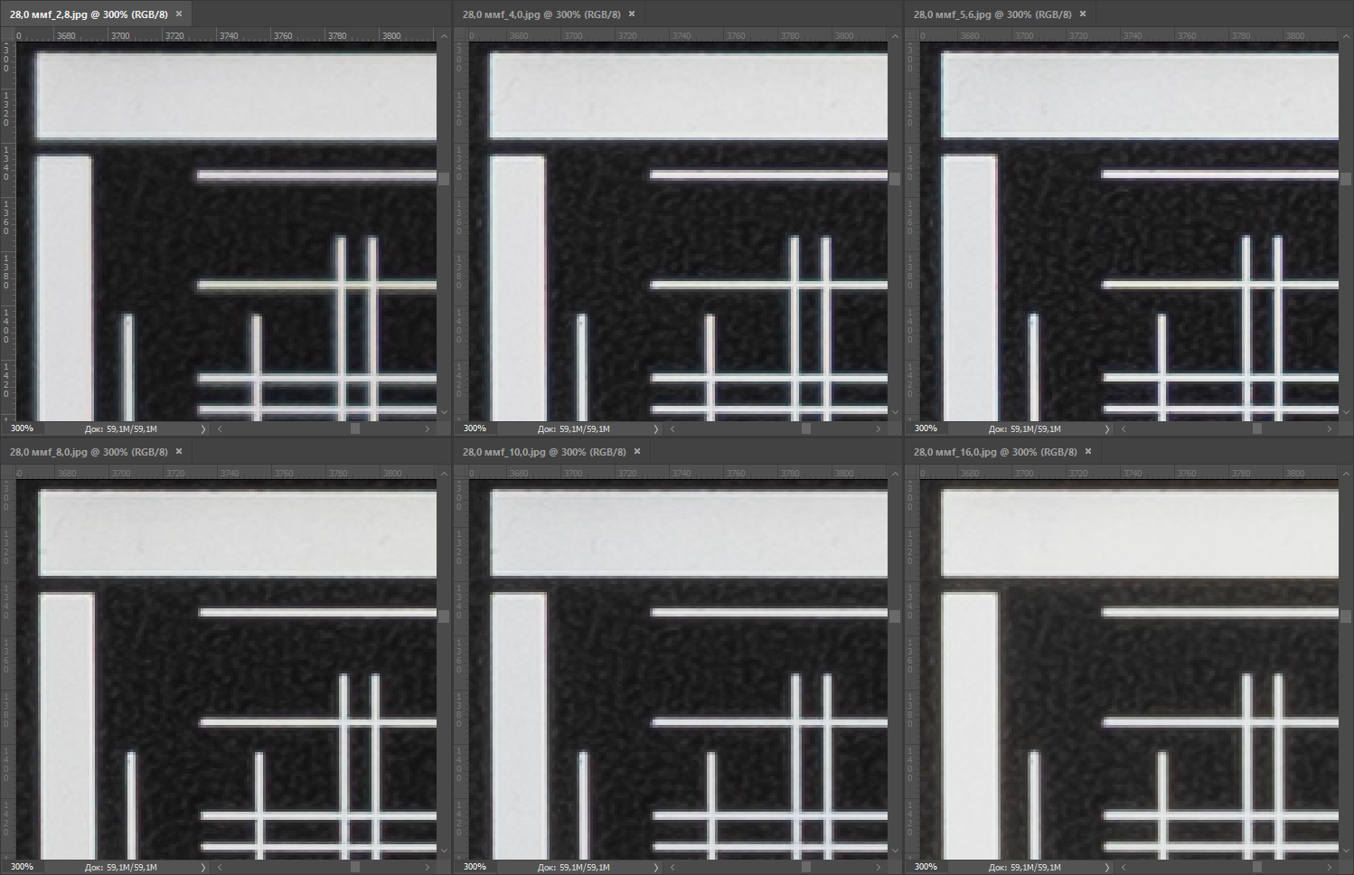 | Разрешение, центр кадра | Разрешение, край кадра |