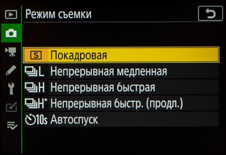 В таблице приведены значения средней скорости съемки для разных режимов. Первой скоростью назовем ту, с которой серийная съемка стартует. Ее предел — время, после которого съемка замедляется и продолжается со второй скоростью. Единицы измерения — кадры в секунду и секунды соответственно. Символ бесконечности означает, что при съемке ста кадров скорость не изменилась.