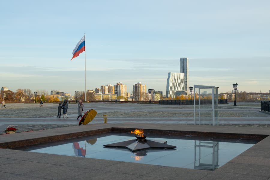 Даже при высоких ISO и раскрытии F4 можно не только считать окна в домах на дальнем плане, но и выявить разный стиль остекления желтых лоджий в доме между флагштоком и фонарем. Хороший микроконтраст картинки позволяет визуализировать структуру изображения, находящегося позади голых ветвей деревьев, отчетливо видеть здания сквозь стекло будки часового и даже различить трос, на котором подвешен флаг Российской Федерации.