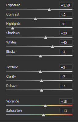 Экспозиция +1,5, ослабление теней +20 и усиление светов +40 дают в сумме +2,1 EV, а это немало. Но именно так удалось спасти снимок. Шумовые артефакты в тенях, конечно, возросли (это закономерно), но все-таки полученную картинку вполне можно использовать и даже отпечатать.