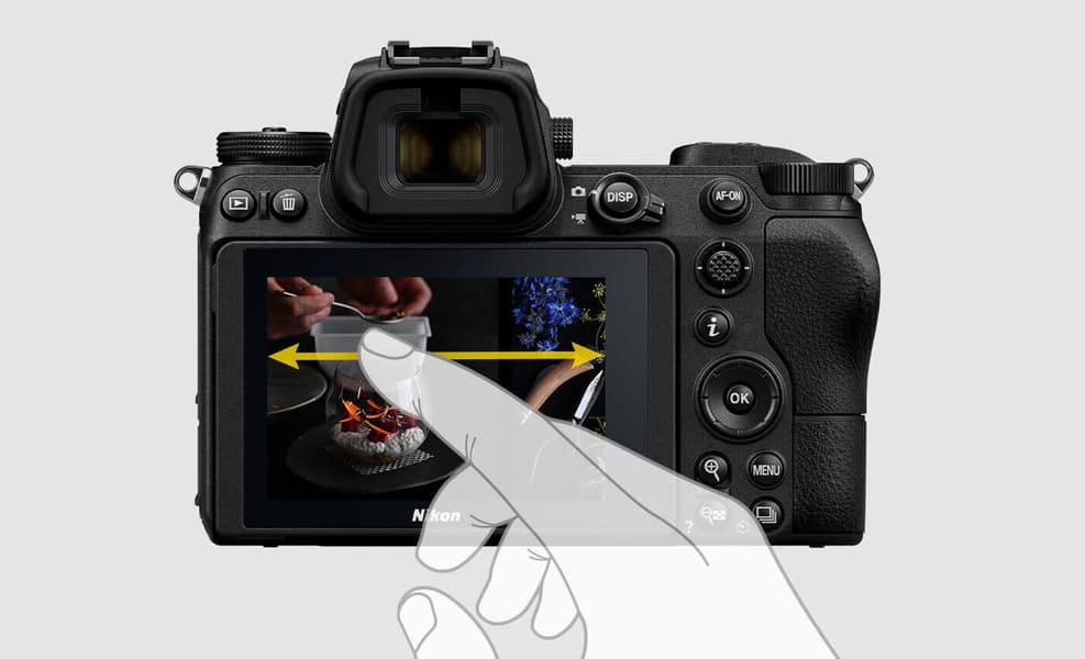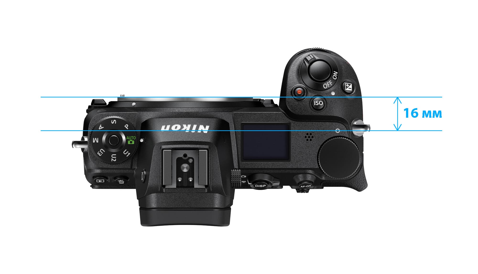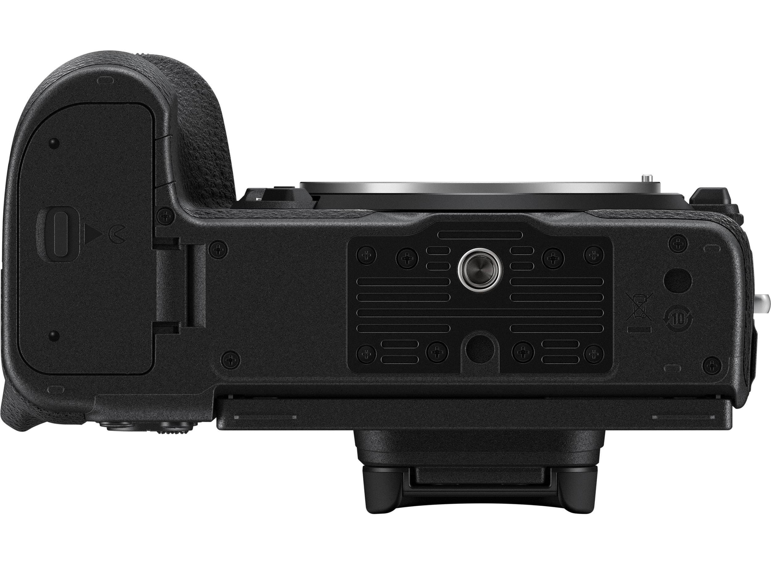 Общие принципы компоновки аппаратов Nikon Z соответствуют условным стандартам, сложившимся в отрасли для беззеркальных камер: блок видоискателя, заменяющий собой пентапризму зеркальных камер, «горячий башмак», главный селектор режимов съемки и колёса управления сверху, основной дисплей сзади, отсеки для проводных интерфейсов слева, слот для карт памяти справа, отсек для батареи и штативная резьба снизу. Впрочем, есть и некоторые особенности.