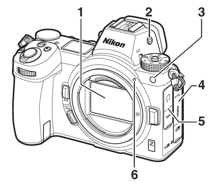 Внешне Nikon Z7 и Z6 отличаются только надписью в правом нижнем углу лицевой панели. Если эту надпись скрыть, то угадать, с какой камерой имеешь дело, не удастся даже специалисту. Поэтому мы приводим ниже описание конструкции сразу для обоих фотоаппаратов линейки Nikon Z.