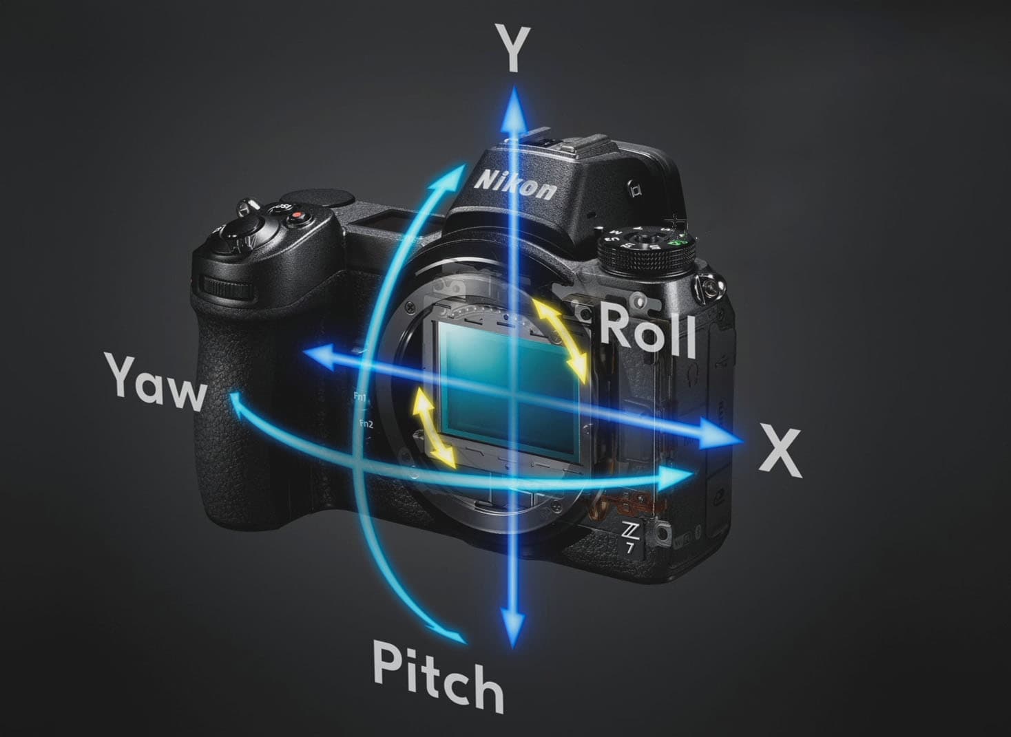 Внутрикамерная стабилизация изображения — непременный атрибут высококлассных беззеркальных камер, и система Nikon Z не стала в этом плане исключением. Аппараты этой линейки обладают механической системой стабилизации, основанной на компенсирующих дрожание ответных перемещениях сенсора по пяти осям с компенсацией вертикальных и горизонтальных сдвигов и угловых отклонений, а также поворотов вдоль оптической оси объектива по часовой стрелке и против нее.