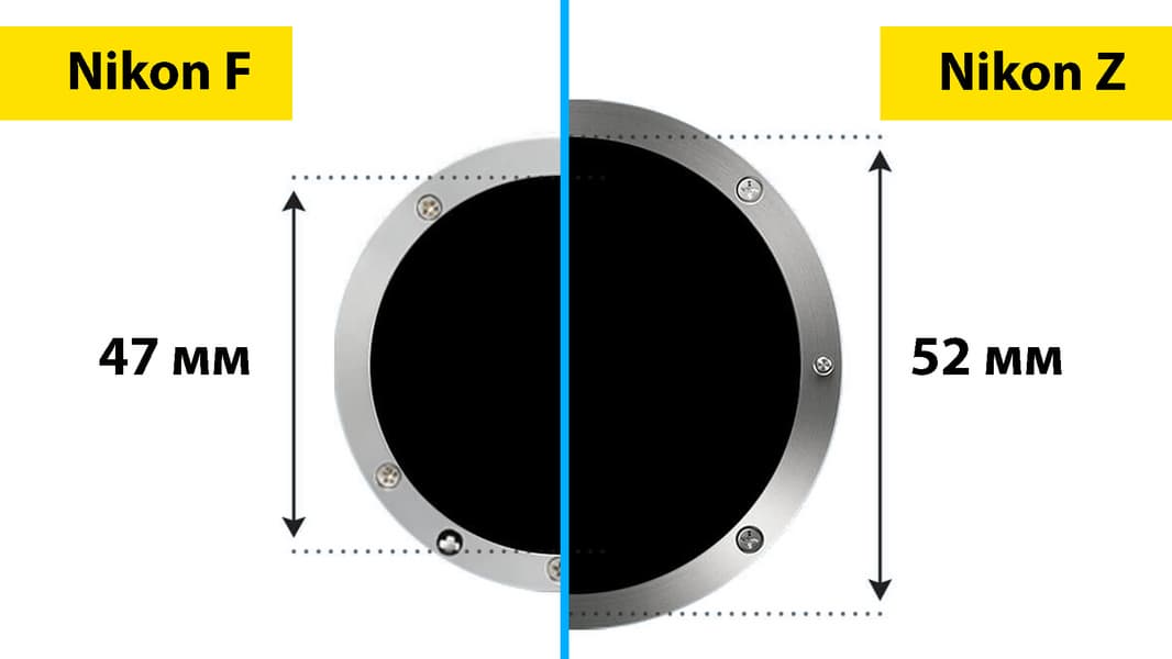 Байонет Nikon Z оказывается не только самым крупным, но и самым коротким: у него наименьший из всех рабочий отрезок.