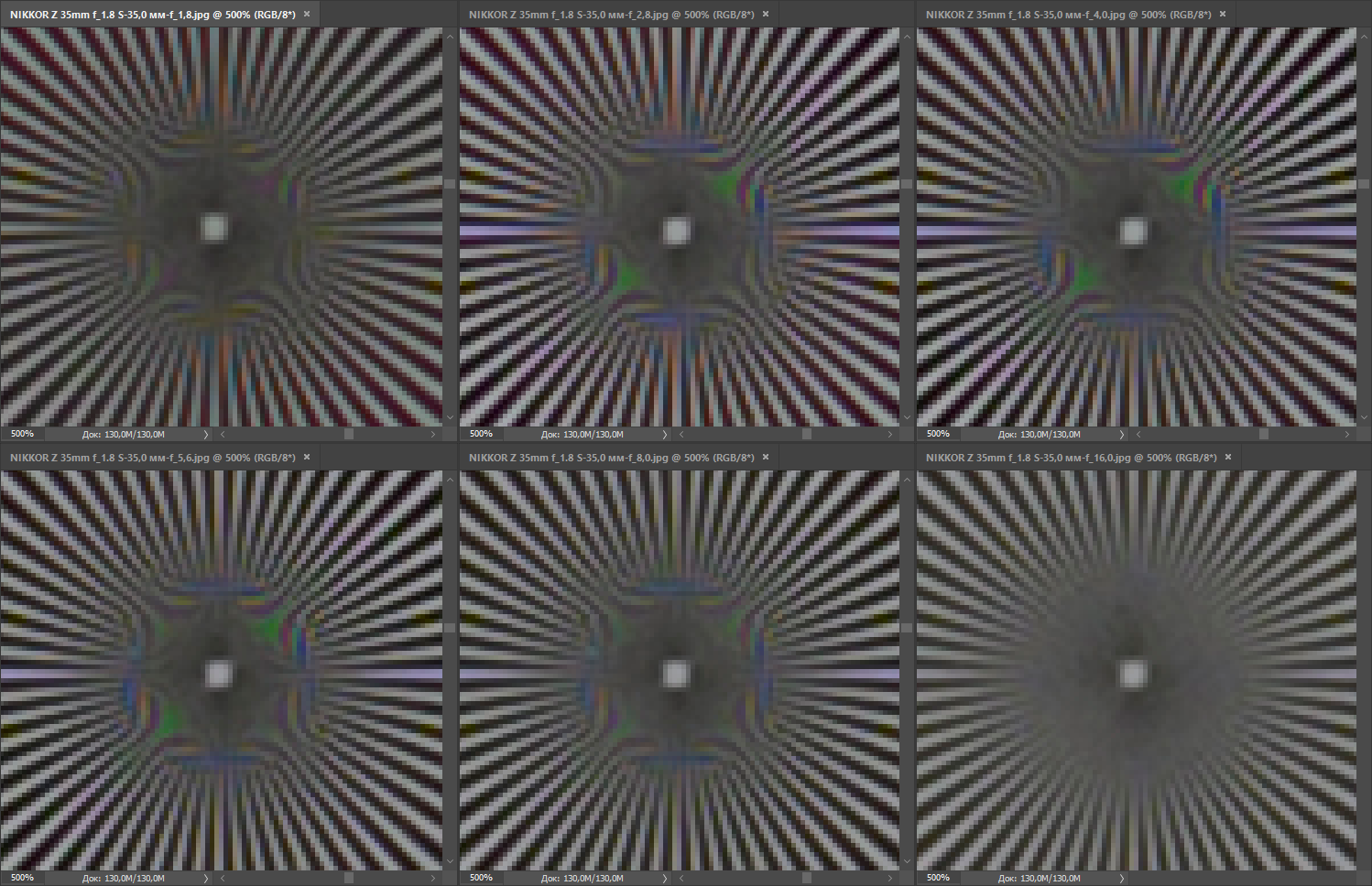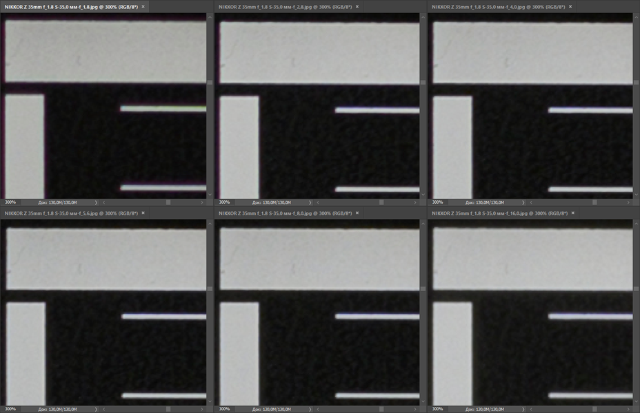 | Разрешение, центр кадра | Разрешение, край кадра |