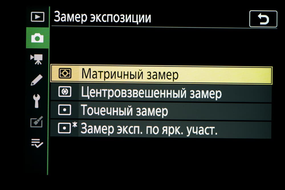 Впоследствии время от времени у нас появлялась необходимость изменить характер экспозамера, а также ввести экспокоррекцию.