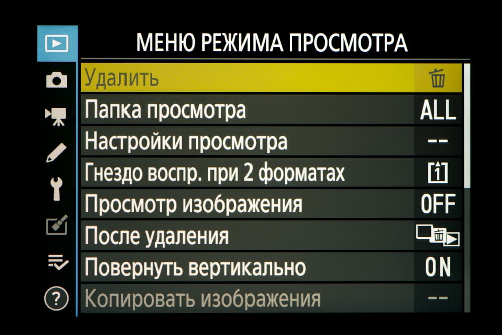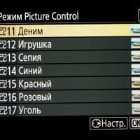 | Внутрикамерная обработка изображений (Picture Control) | базовые режима: «Авто», «Стандартный», «Нейтральный», «Насыщенный», «Монохромный», «Портрет», «Пейзаж» и «Равномерный»; творческие режимы: «Сон», «Утро», «Поп», «Воскресенье», «Мрачность», «Драматичность», «Тишина», «Выбеливание», «Меланхолия», «Чистота», «Деним», «Игрушка», «Сепия», «Синий», «Красный», «Розовый», «Уголь», «Графит», «Два тона», «Сажа» |