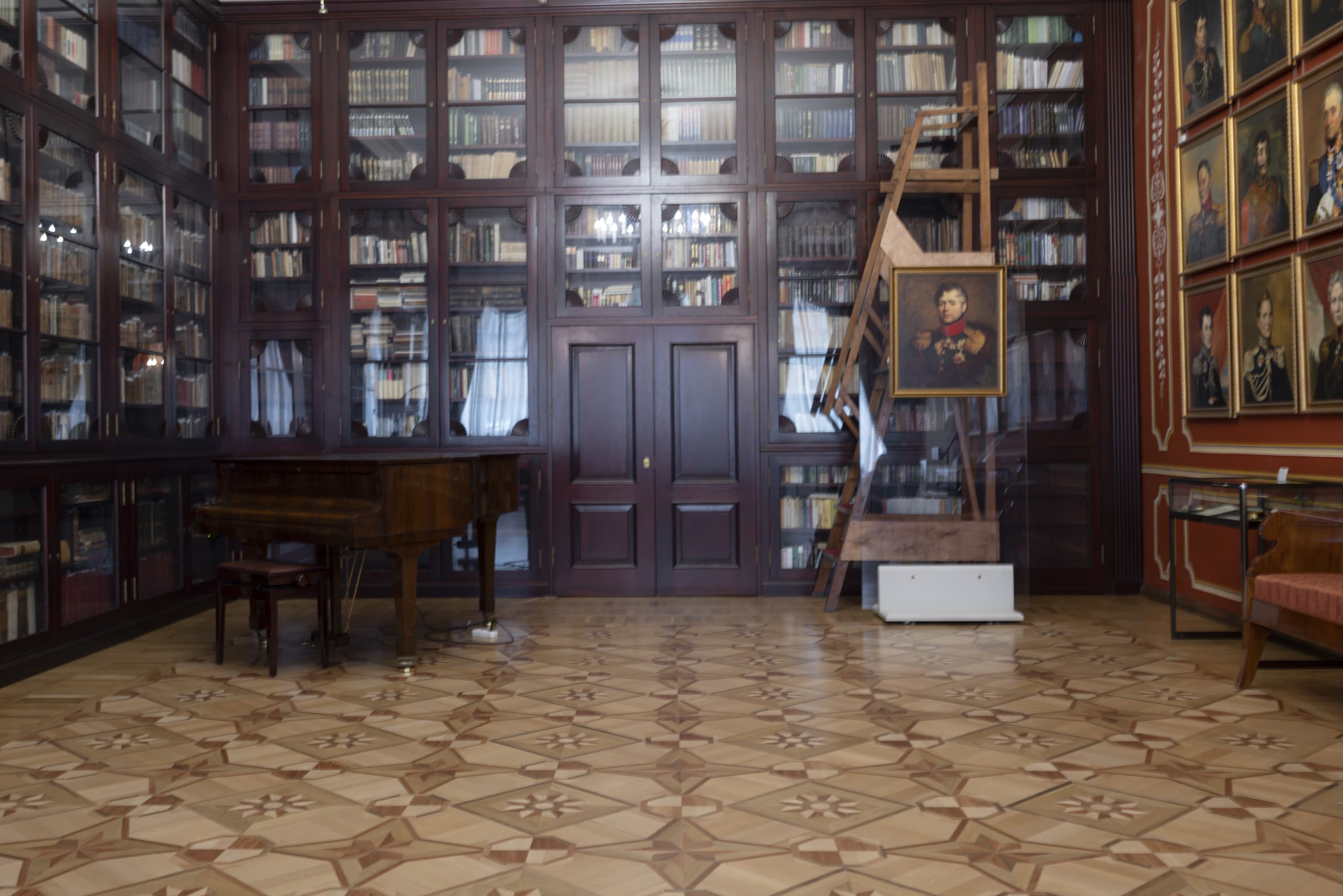Для проверки эффективности внутрикамерной стабилизации в условиях практического фотографирования мы предприняли съемку в библиотеки дома героя Отечественной войны 1812 г., московского генерал-губернатора князя Дмитрия Голицына в Вязёмах (ныне подмосковный Пушкинский заповедник).