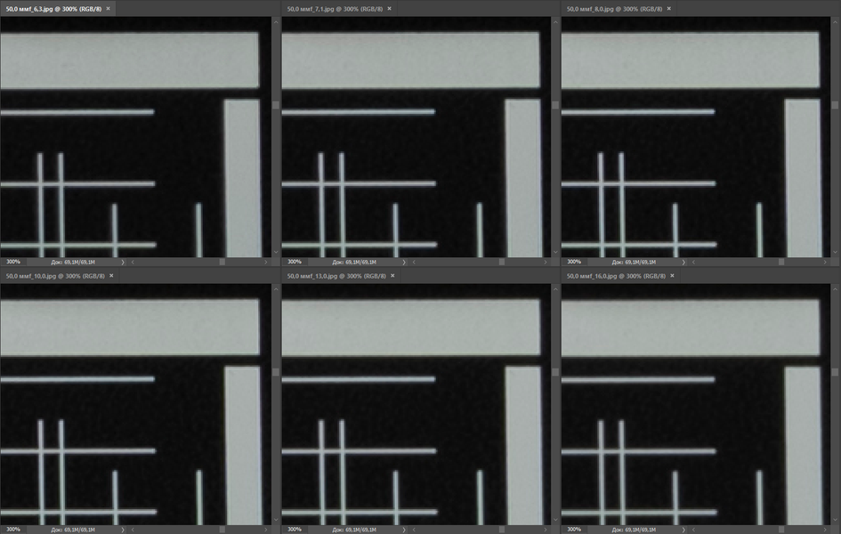 | Разрешение, центр кадра | Разрешение, край кадра |