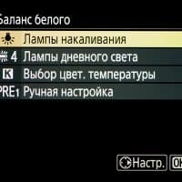 | Баланс белого | авто (3 типа), авто для естественного освещения, прямой солнечный свет, облачно, тень, лампы накаливания, лампы дневного света (7 типов), вспышка, прямая установка цветовой температуры (2500—10000 К), пользовательский (до 6 значений) |