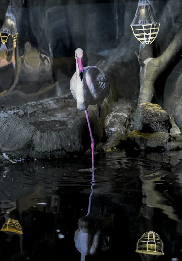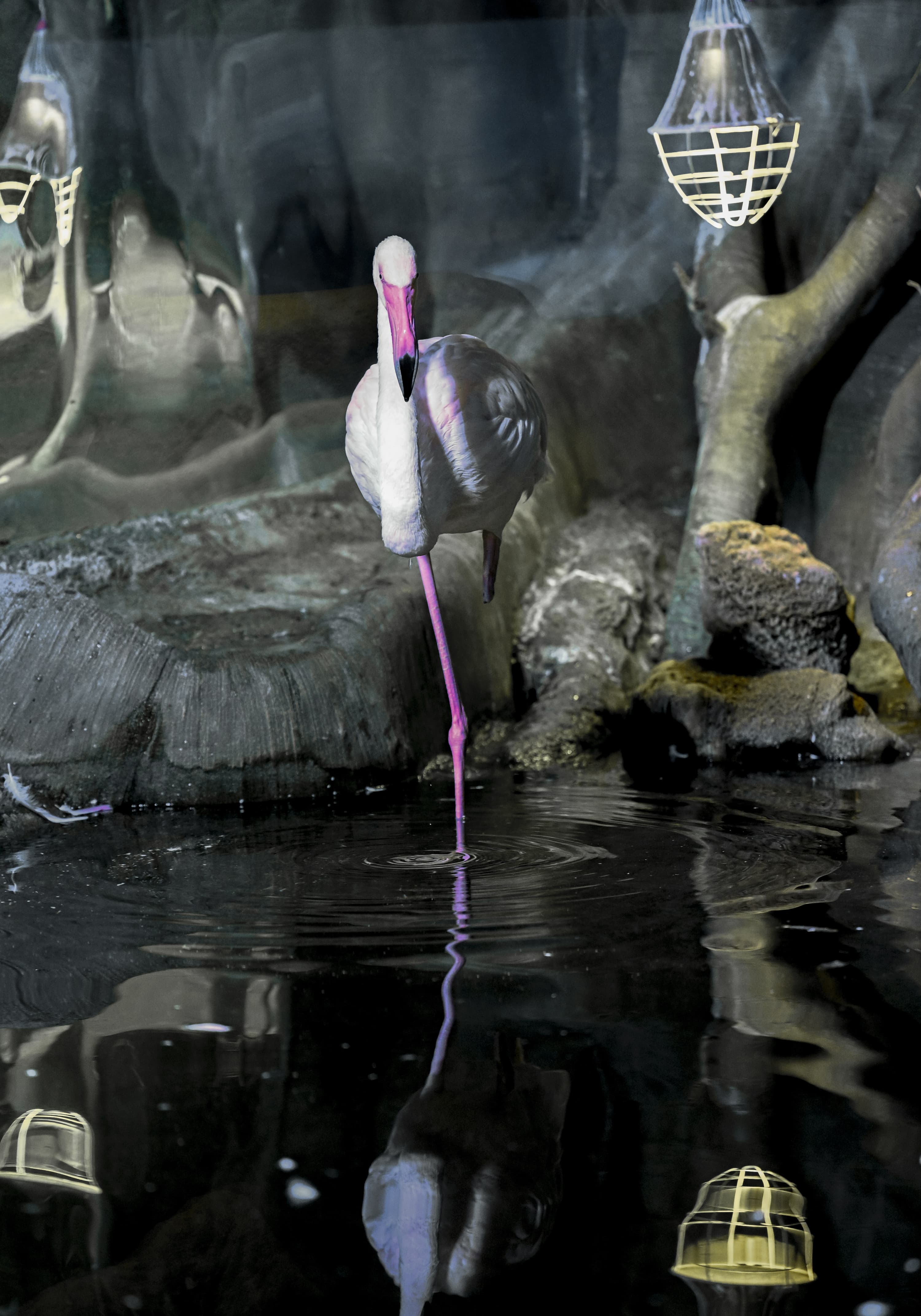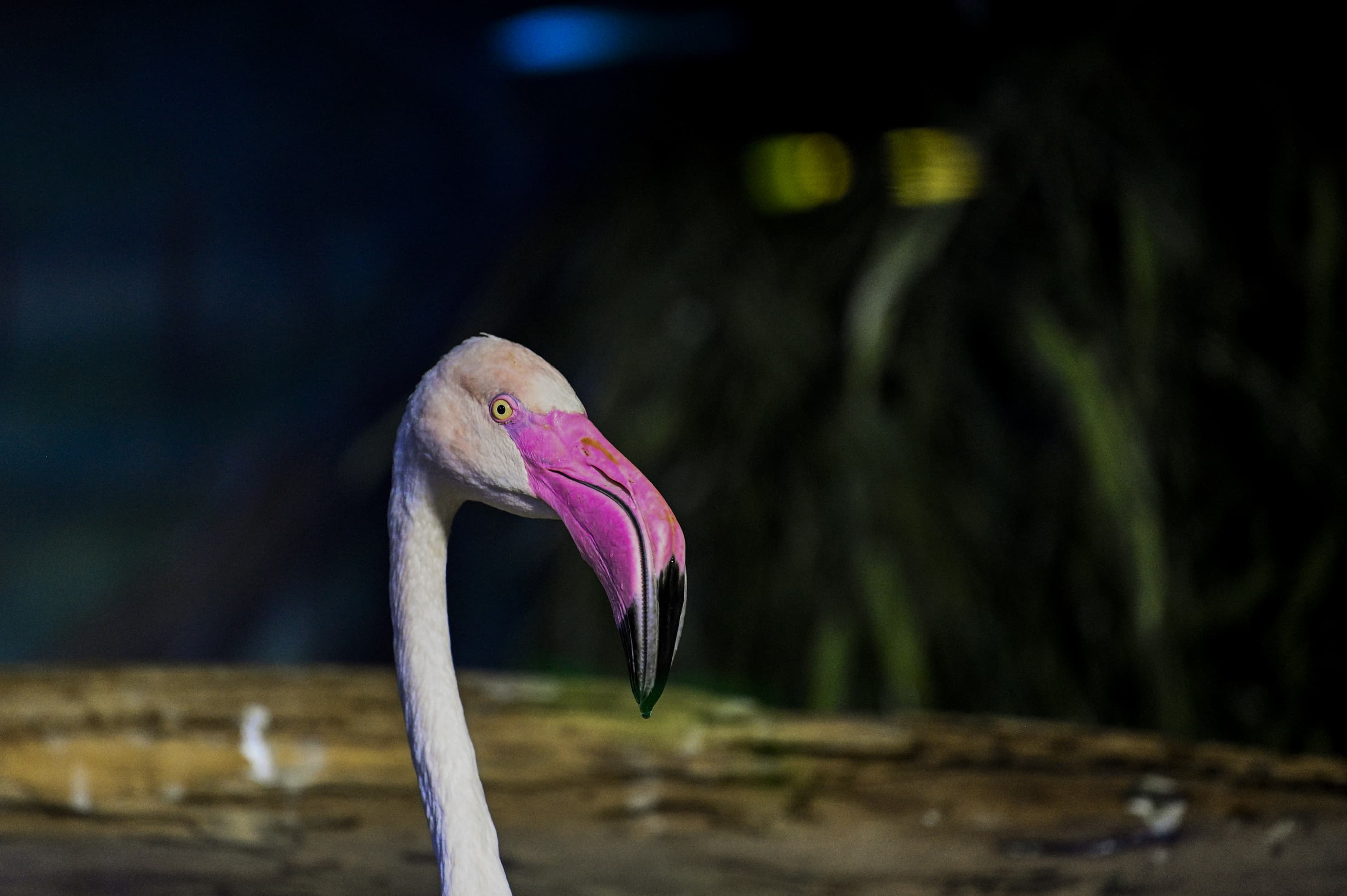 Серия 2. 13 кадров. Узкозонная АФ по голове фламинго. Фокусное расстояние 70 мм.