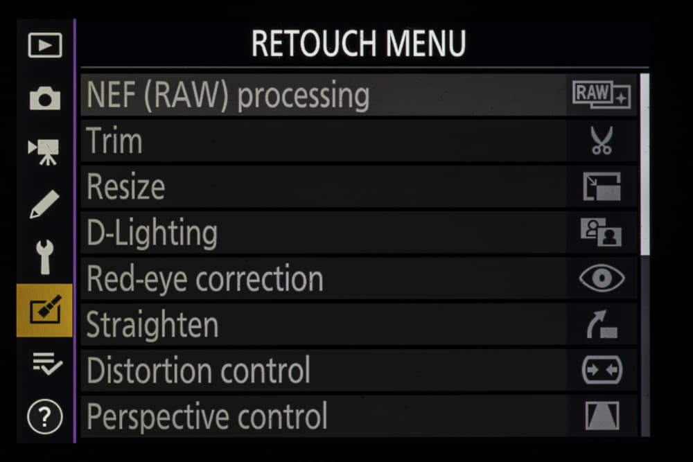 | Внутрикамерная обработка изображений (Picture Control) | базовые режима: «Авто», «Стандартный», «Нейтральный», «Насыщенный», «Монохромный», «Портрет», «Пейзаж» и «Равномерный»; творческие режимы: «Сон», «Утро», «Поп», «Воскресенье», «Мрачность», «Драматичность», «Тишина», «Выбеливание», «Меланхолия», «Чистота», «Деним», «Игрушка», «Сепия», «Синий», «Красный», «Розовый», «Уголь», «Графит», «Два тона», «Сажа» |