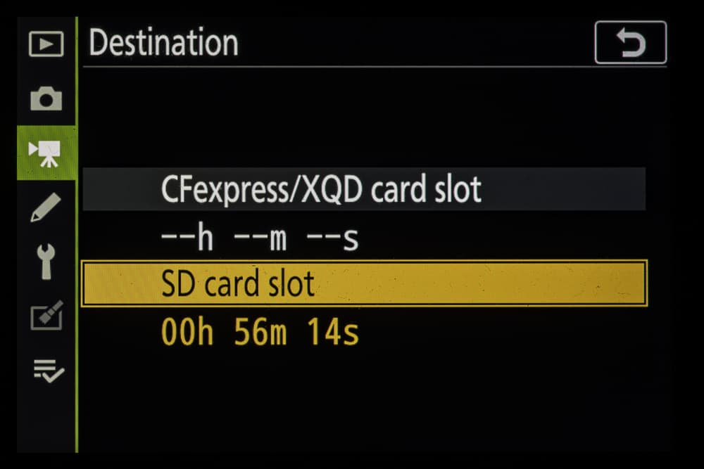На карты памяти движущиеся изображения записываются в 8-битном стандарте (4:2:0). Если же подключить к интерфейсу HDMI внешний рекордер видео, можно сохранять футажи в 10-битном стандарте (4:2:2) и с записью параметров гаммы контрастности в логарифмическом (N-Log) и гибридном (HLG) видах.