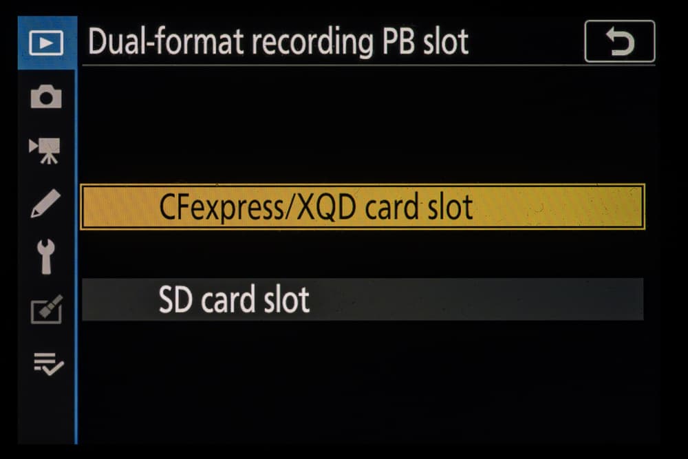 - Два слота для карт памяти: первый для CFExpress или XQD, второй для SD/SDHC/SDXC UHS-II