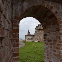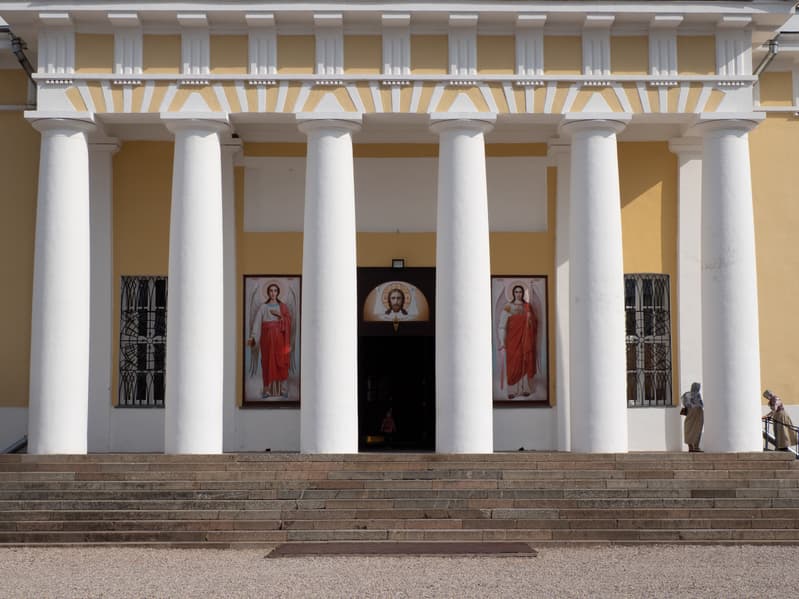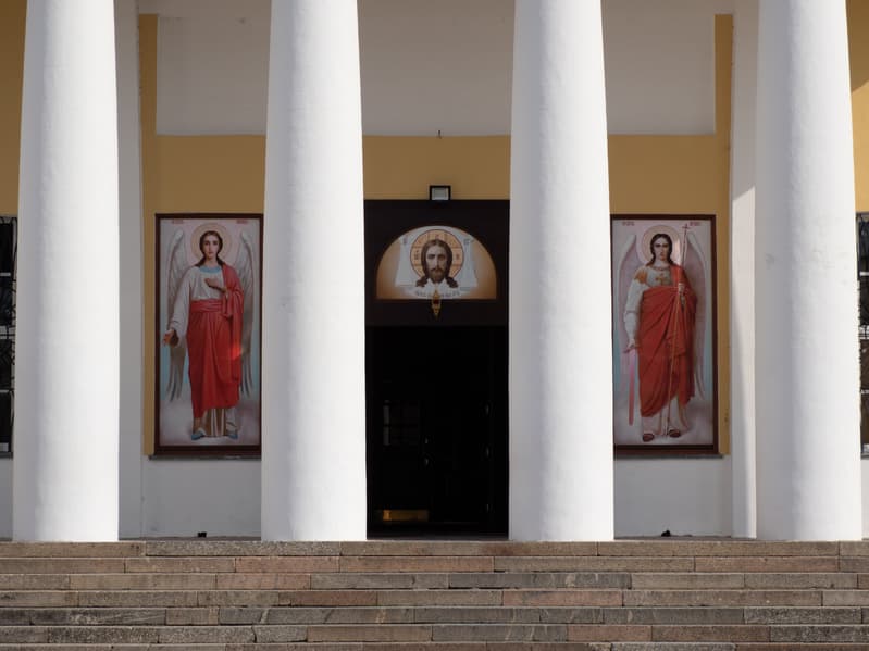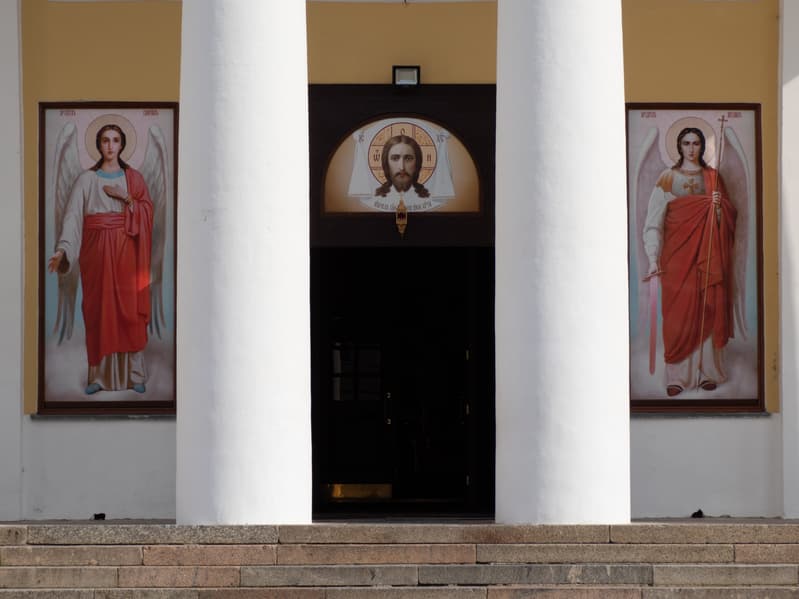 По части детализации все в порядке даже на фото в наиболее широкоугольном положении. Во всяком случае, на нем можно прочесть слова на надвратной иконе: «Образ Господа Нашего Иисуса Христа». Дисторсия практически незаметна (правда, колонны исходно имеют форму усеченного конуса).