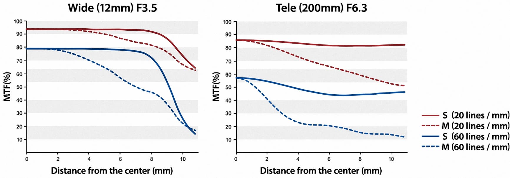 Графики MTF (Modulation Transfer Function, или частотно-контрастной характеристики) объектива можно найти на asia.olympus-imaging.com. Напомним, что в идеале кривые должны располагаться максимально высоко, быть параллельными оси абсцисс и не содержать завалов.