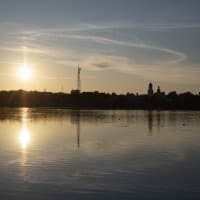 Сюжетно этот снимок довольно интересен, но есть проблемы с воспроизведением, которые порождает сверхвысокая контрастность, и виноват здесь не объектив, а сенсор камеры. При F11 и фокусном расстоянии 80 мм глубина резкости весьма широка, и это доказывает прекрасно различимый рисунок каменных плит дорожки, детали силуэтов на всех планах справа. А вот слева контуры фонарей размыты да еще и «выедены» яркими солнечными бликами на поверхности воды. Явление, приводящее к таким эффектам, носит название блюминг (blooming): в краевых зонах участков с запредельной яркостью переэкспонированные светоприемные ячейки переполняются зарядом и «выплескивают» его в соседние ячейки. Если не допускать попадания в поле зрения объектов со сверхвысокой яркостью, то результат будет совсем иной.