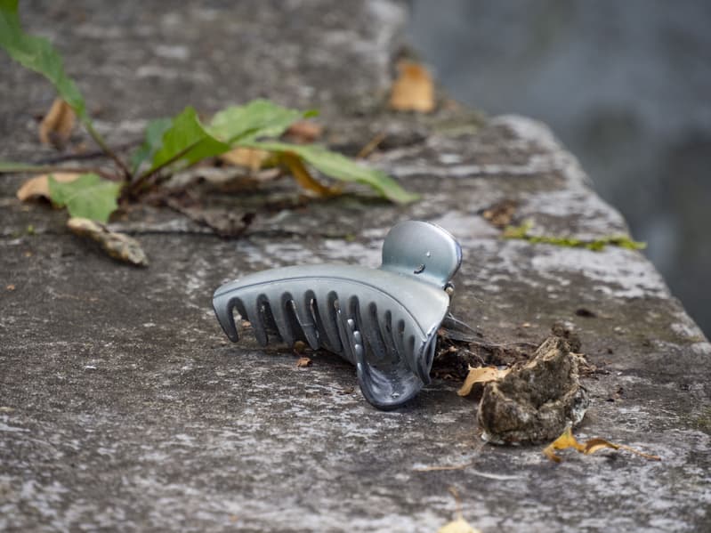 В максимальном телеположении при F6,3 глубина резкости довольно мала, поэтому обратим внимания на структуру поверхности камня и оставленную кем-то заколку для волос. Предметы узнаваемы, и результат работы объектива не оставляет сомнений в том, что горизонтальная поверхность — бетонная, а заколка — пластмассовая. Мелкие подробности воспроизведены удачно; справа от заколки можно видеть даже тонкую многослойную паутину.