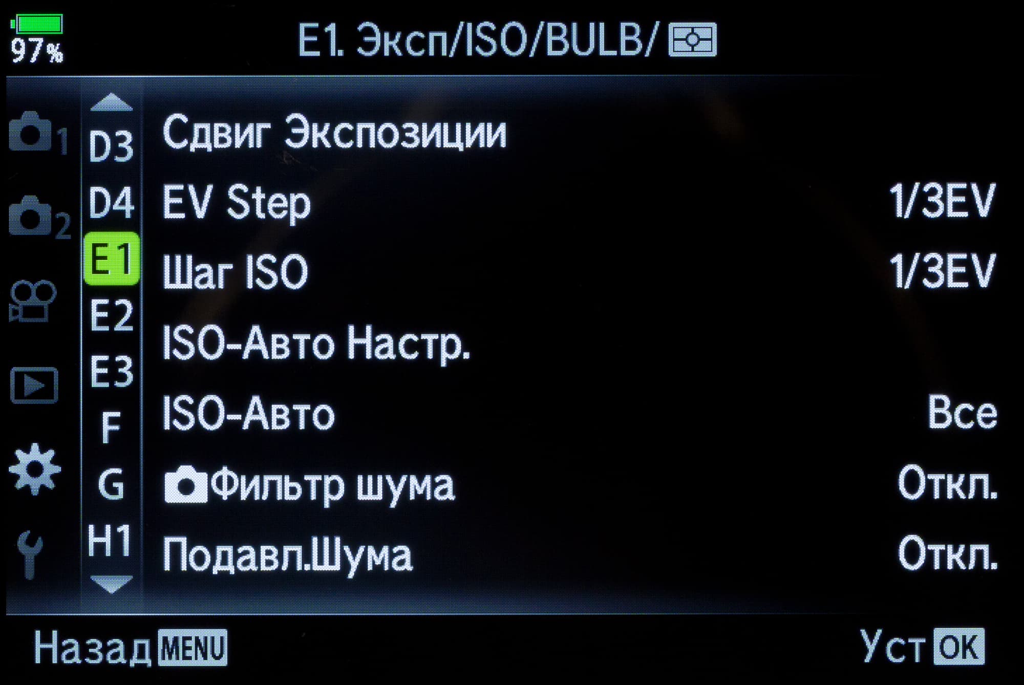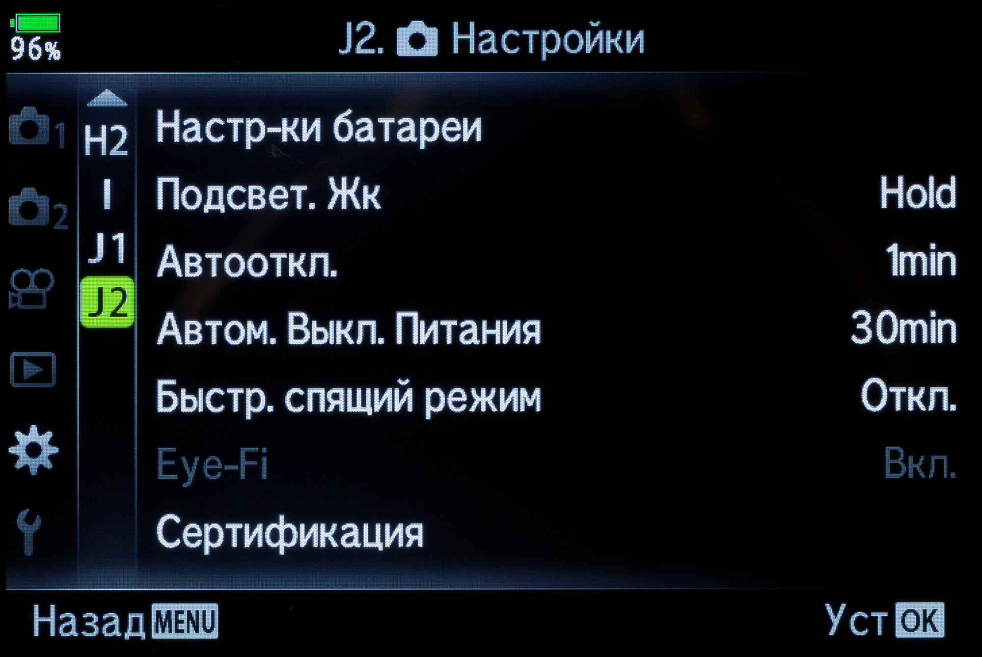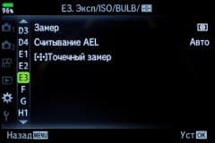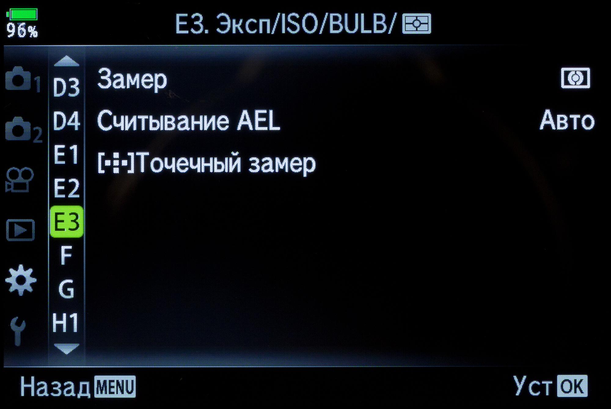 | Эквивалентная светочувствительность | авто (ISO 200—6400), ISO 200—25600 с шагом ⅓ или 1 EV |
