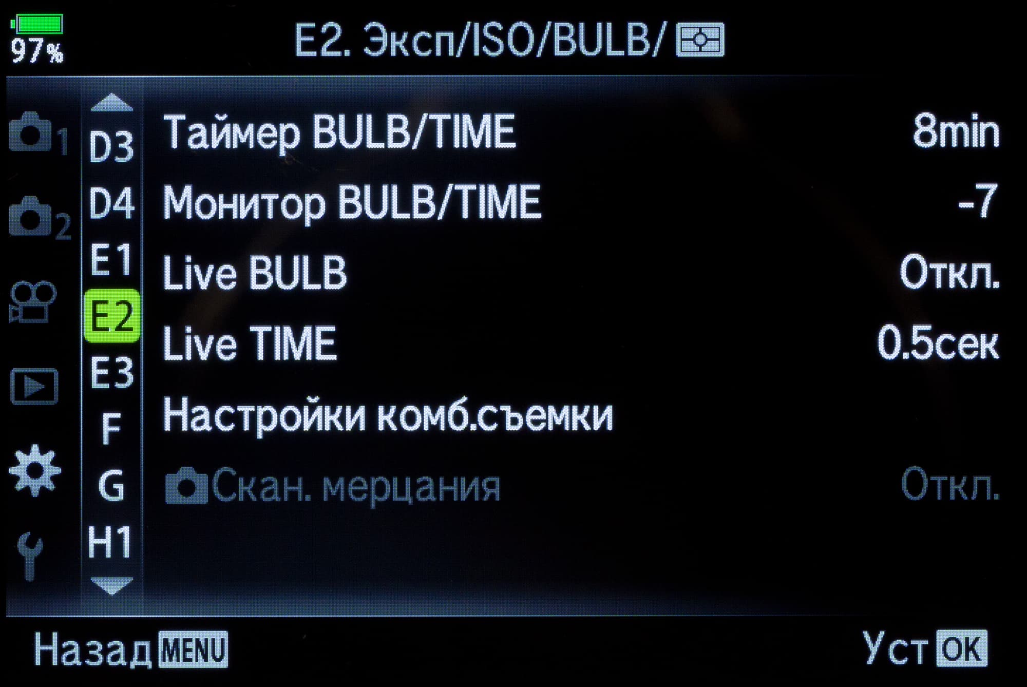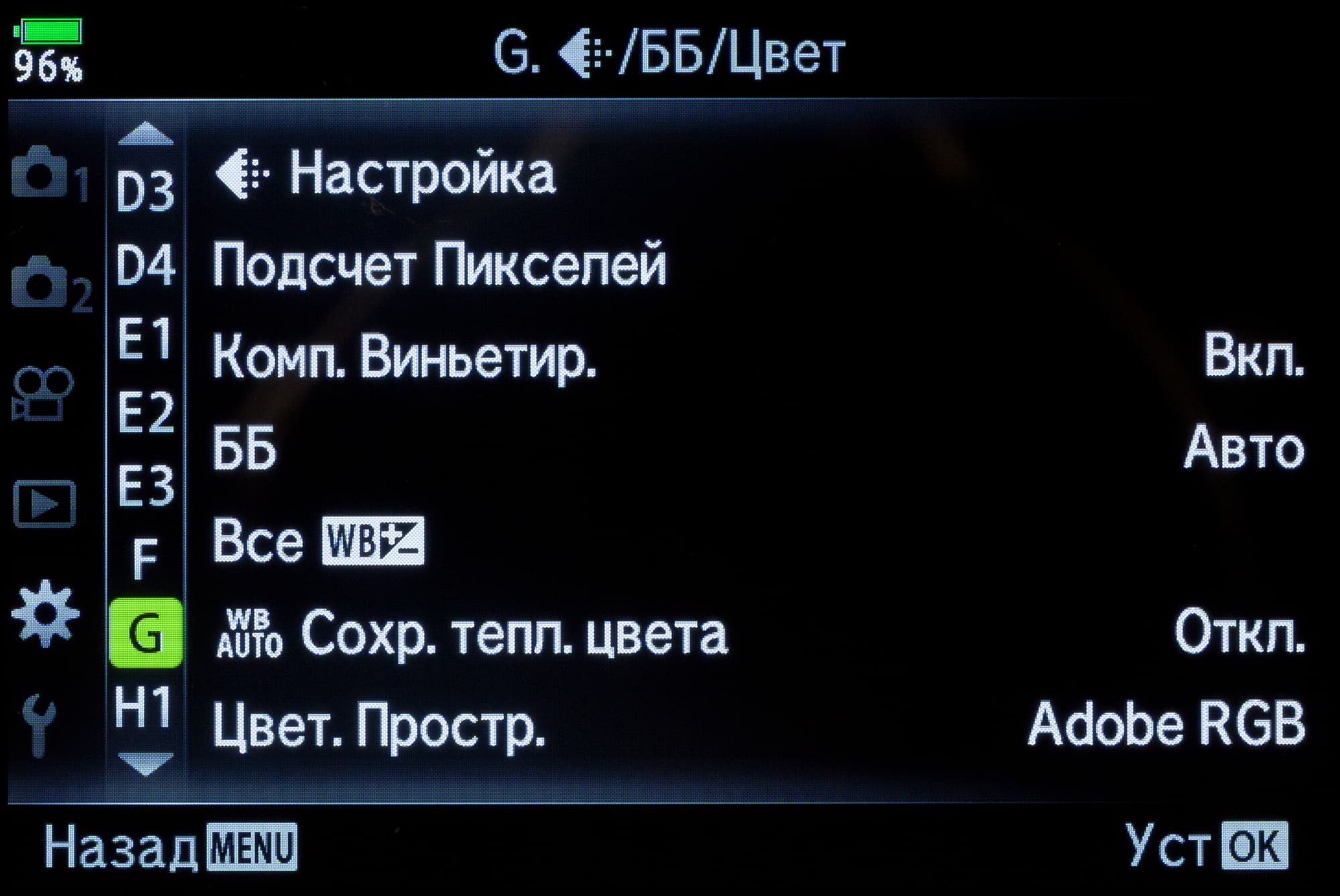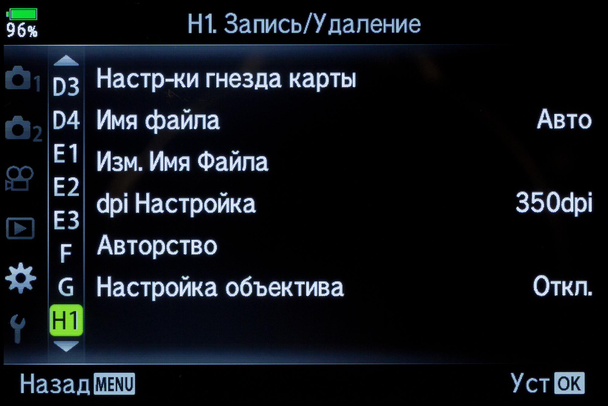| Эквивалентная светочувствительность | авто (ISO 200—6400), ISO 200—25600 с шагом ⅓ или 1 EV |
