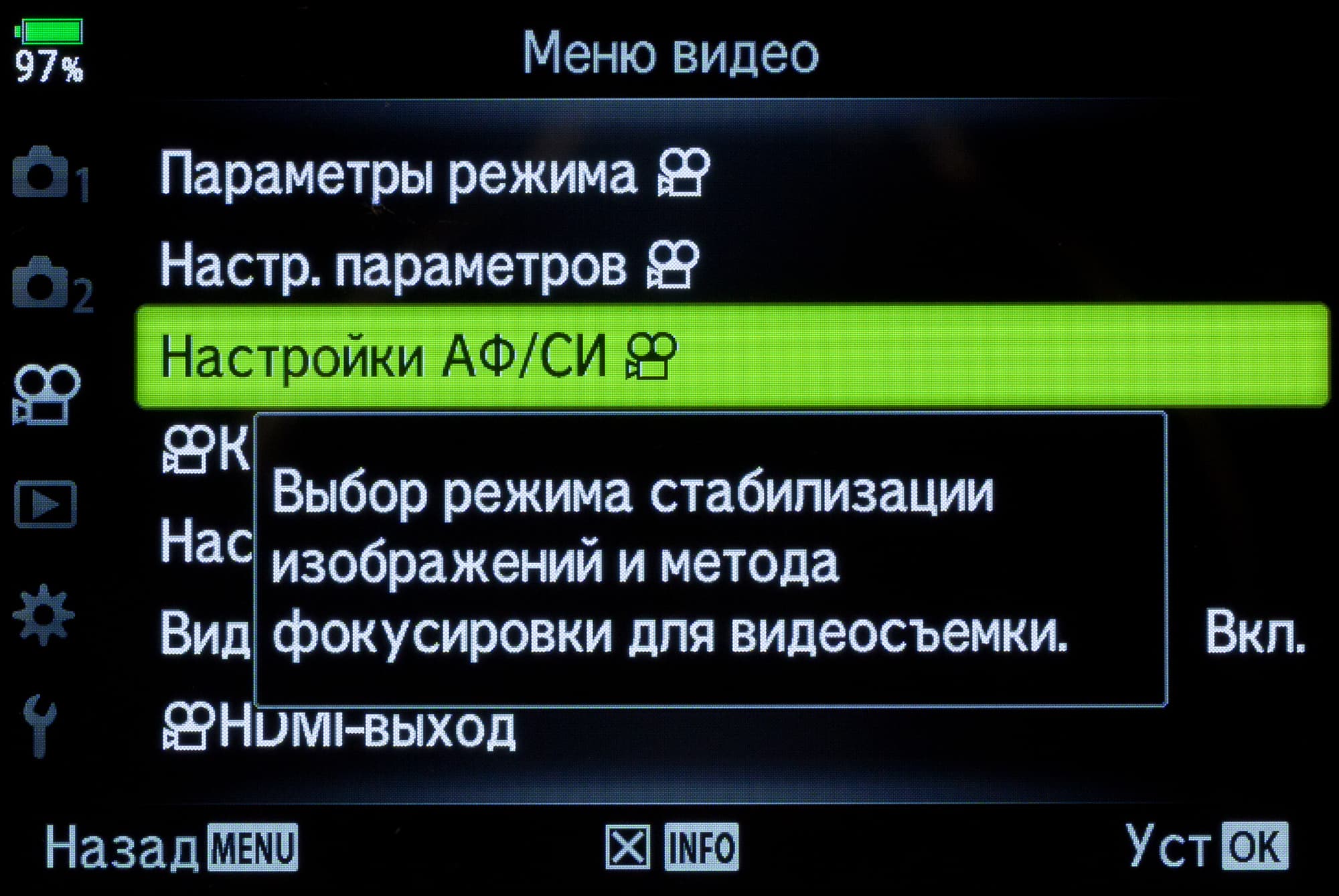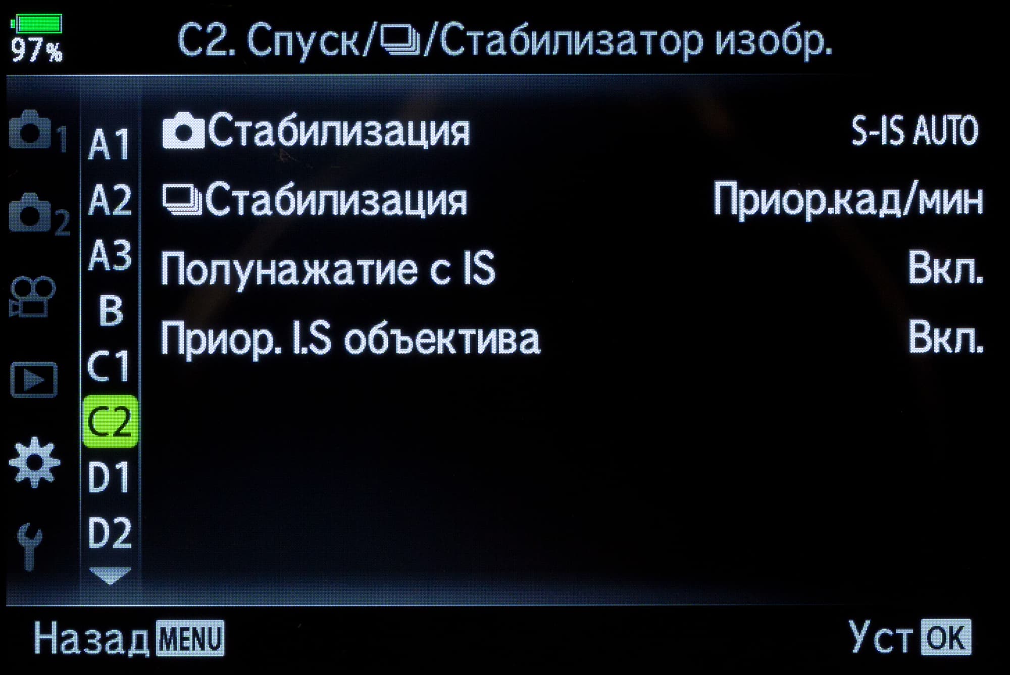 Panasonic Lumix DC-G9, ориентированная преимущественно на фотосъемку, в эффективности работы стабилизатора выигрывает у нашей сегодняшней подопечной целую дополнительную ступень (6,5 EV против 5,5 EV), но такие показатели лучше проверять на практике, а не доверяться данным официальных спецификаций.