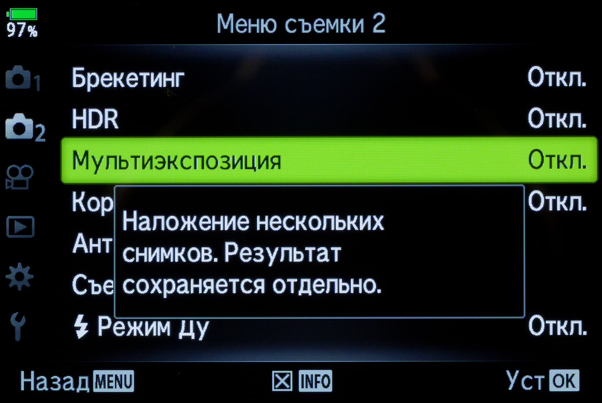 Помимо брэкетинга по экспозиции, ISO и балансу белого, в Olympus OM-D E-M1 Mark II реализована и чисто программная функция брэкетинга зоны резкости. Если установить камеру на штатив и выбрать соответствующую опцию в меню брэкетинга, то можно автоматически сделать от 2 до 999 снимков со сдвигом зоны от заднего плана к переднему. Затем эти фото можно сшить в стороннем приложении и получить снимок с любой желаемой глубиной резкости.