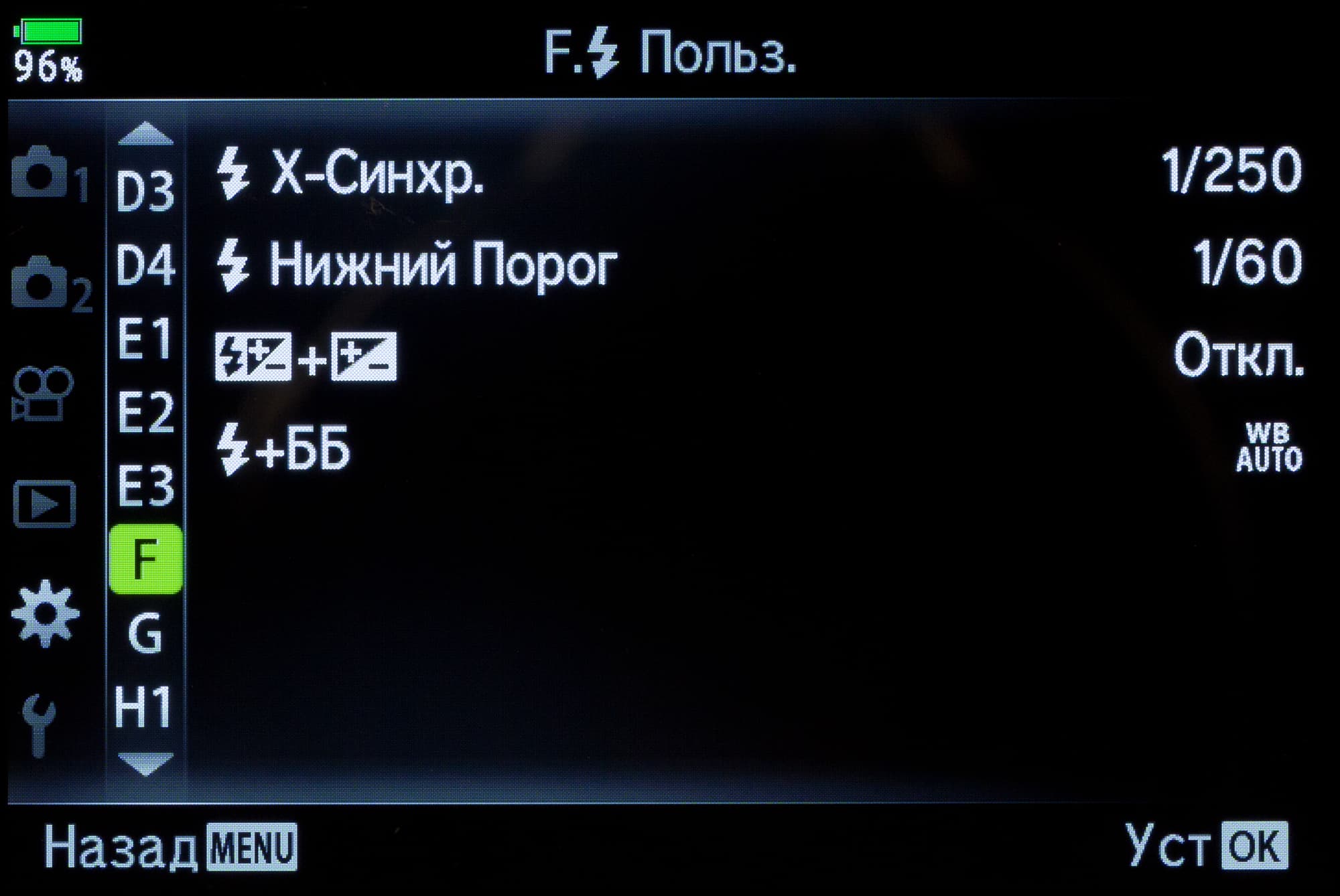 | Выдержка X-синхронизации | 1/250 с и 1/8000 с (Super FP) |