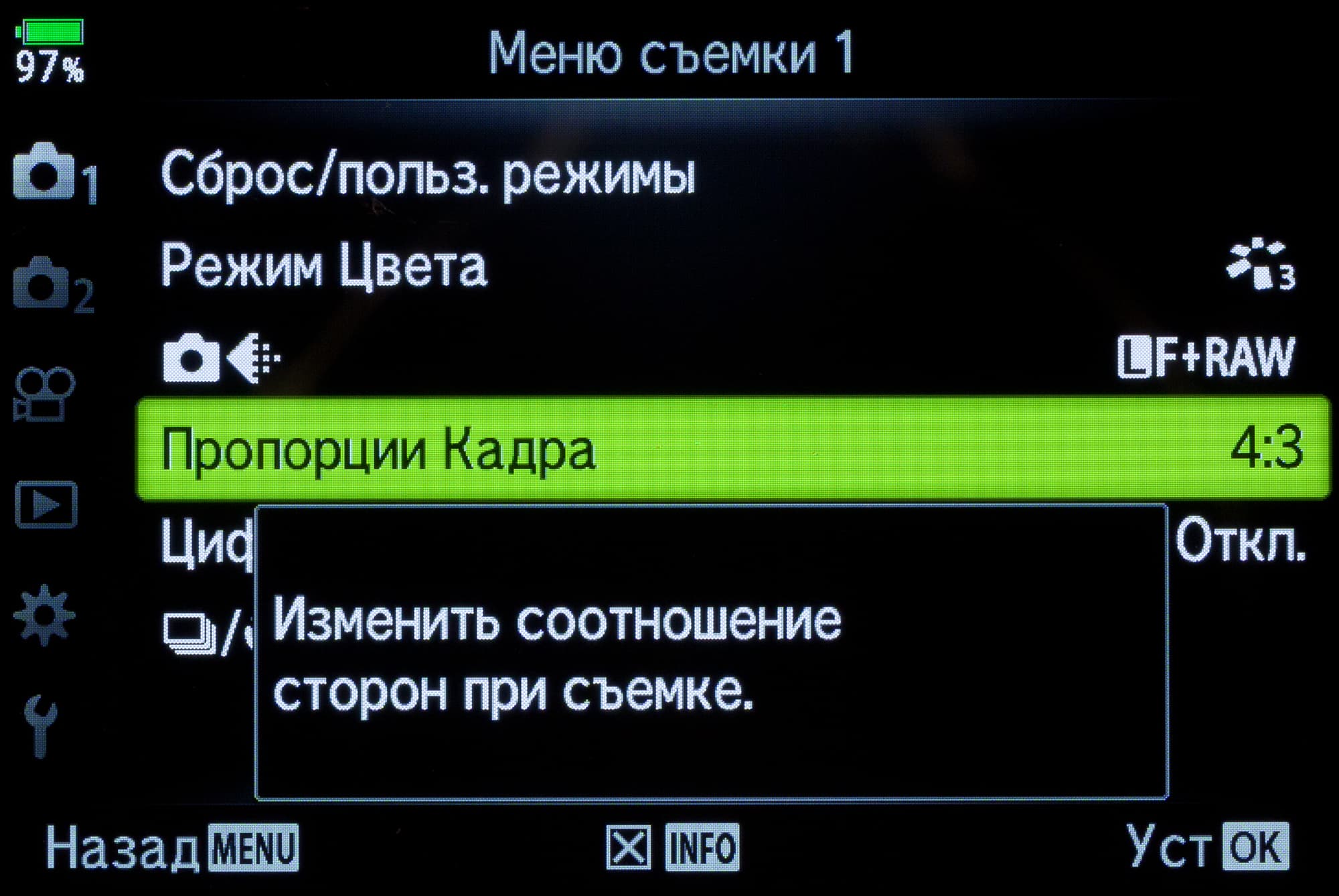 | Формат записи фотоснимков | JPEG (Exif 2.3), RAW (12-битный ORF) |